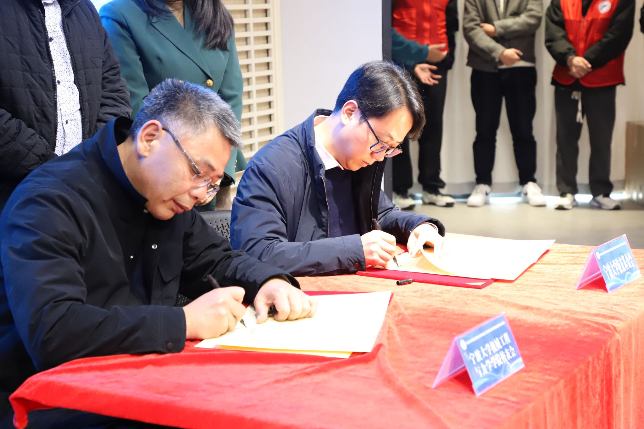 今年9月,学院发起“王雅娟育才基金”续捐倡议,校友们再次积极响应、慷慨捐资,成功筹集了100万元善款,成立第二期“王雅娟育才基金”。大会上,1991级校友薛智海作为代表与王智腾共同签署了第二期“王雅娟育才基金”捐赠协议书。邬昕东、陈碧芸等基金主要捐赠人与学院党委副书记沈妍伶一同上台见证。