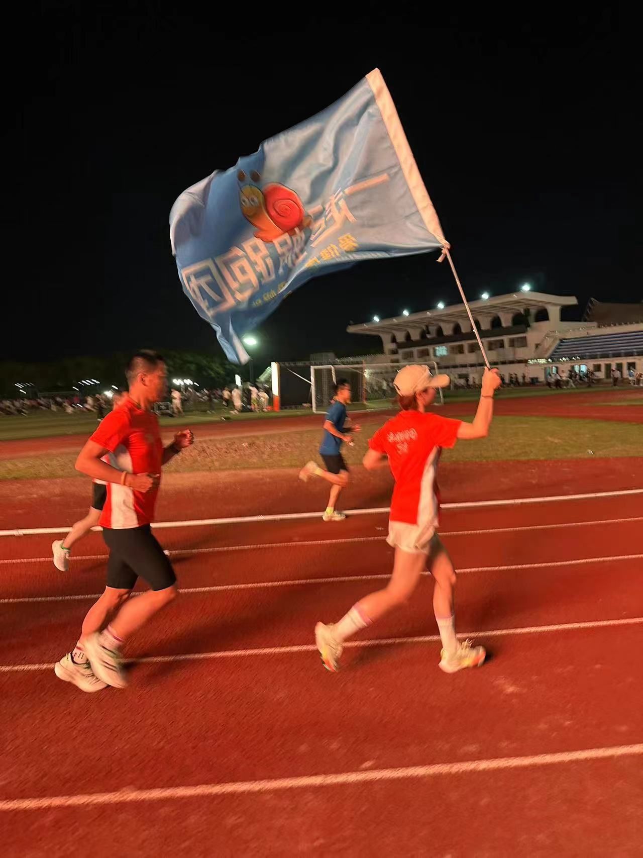 待夜跑正式开始后,校友们踏上了熟悉的校园跑道,与学弟学妹们一同奔跑在夜色中,他们的身影在灯光下显得格外耀眼。新老宁大人共同在跑道上挥洒汗水,伴随着歌声、欢呼声,接力奔跑完成7.5公里的赛程。奔跑结束后,校友们纷纷感叹,仿佛又重回青春时光,在校园里肆意奔跑感觉真的很棒,学弟学妹满满的活力也感染了自己,真正感受到了快乐宁大。