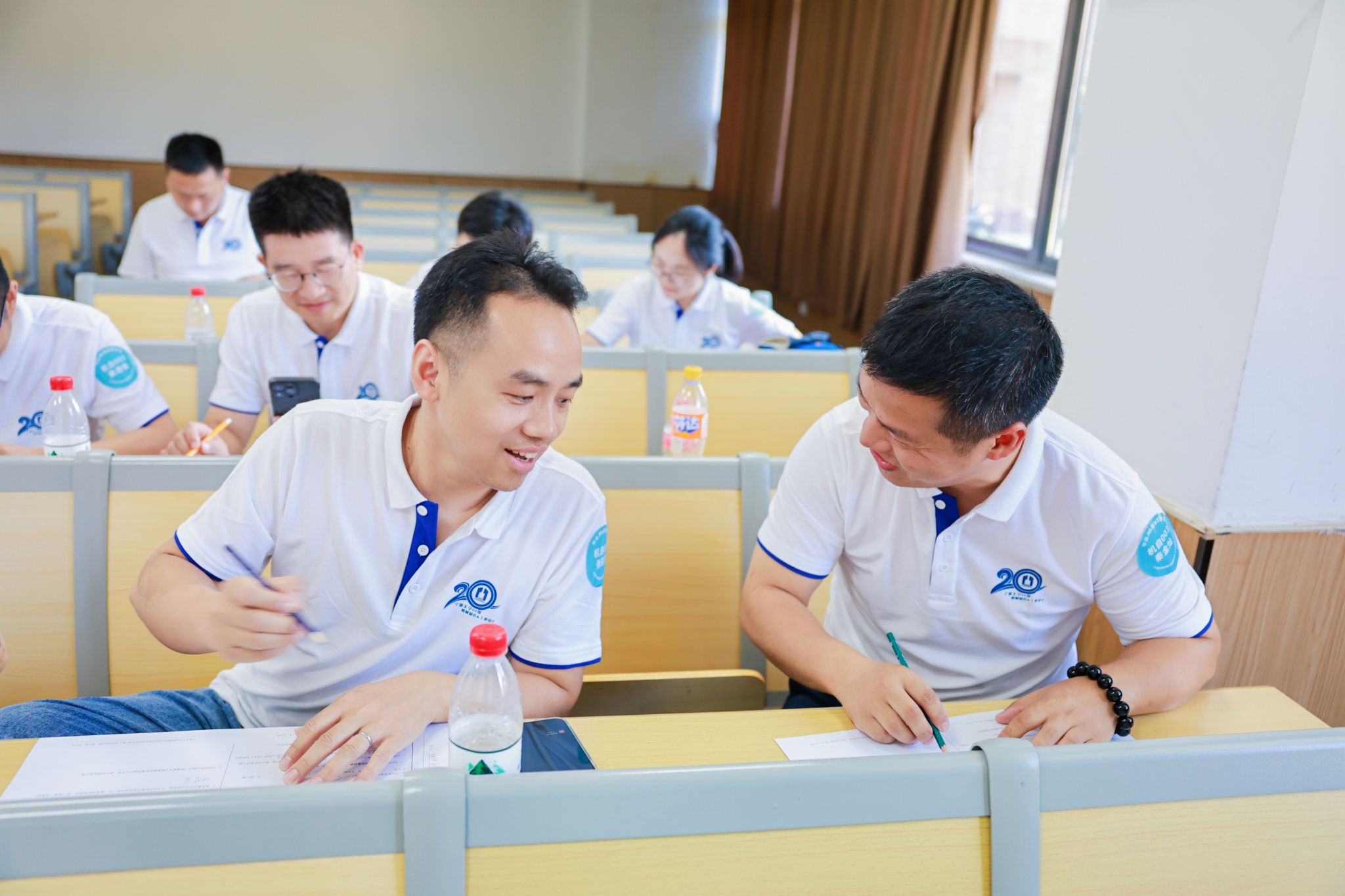 6日下午,教学楼内,一场场别开生面的班会缓缓拉开帷幕。首先,一段精心制作的视频带领大家穿梭回那段青葱岁月,视频中记录着昔日青涩的笑脸和纯真的梦想,瞬间点燃了现场的气氛。紧接着,一份别出心裁的试卷成为了班会的彩蛋,试卷上的题目与同学们息息相关,融入了诸多趣事回忆,如“找出以下同学名字中的错别字”等,让校友们在欢声笑语中重温了那段共同奋斗的时光,仿佛时间倒流,大家又回到了那个充满求知欲与梦想的课堂。紧接着,校友们又来到了绣山工程楼,常云发、方志梅、李国平等教师代表也来到现场,校友们满怀感激之情,为老师们送上鲜花,并拍摄了一张张温馨的大合影, “老师们辛苦了!”“二十年一如初见!”一句句口号是对师恩的铭记,也是对过往岁月的深深致敬。