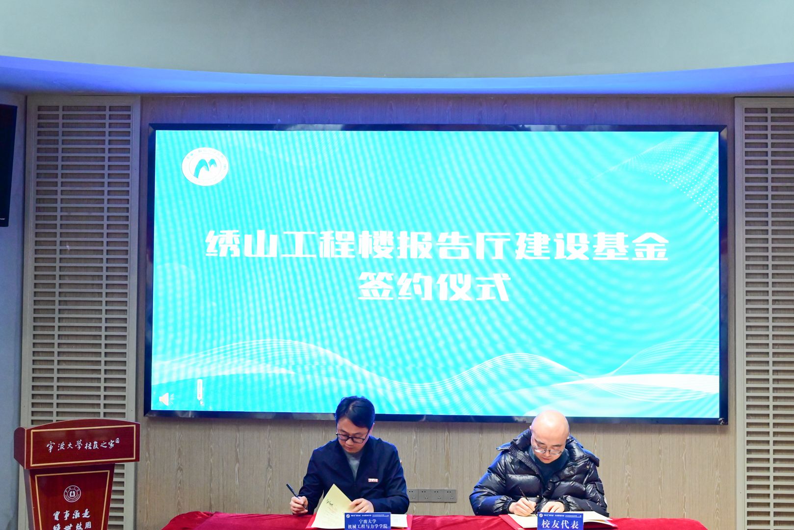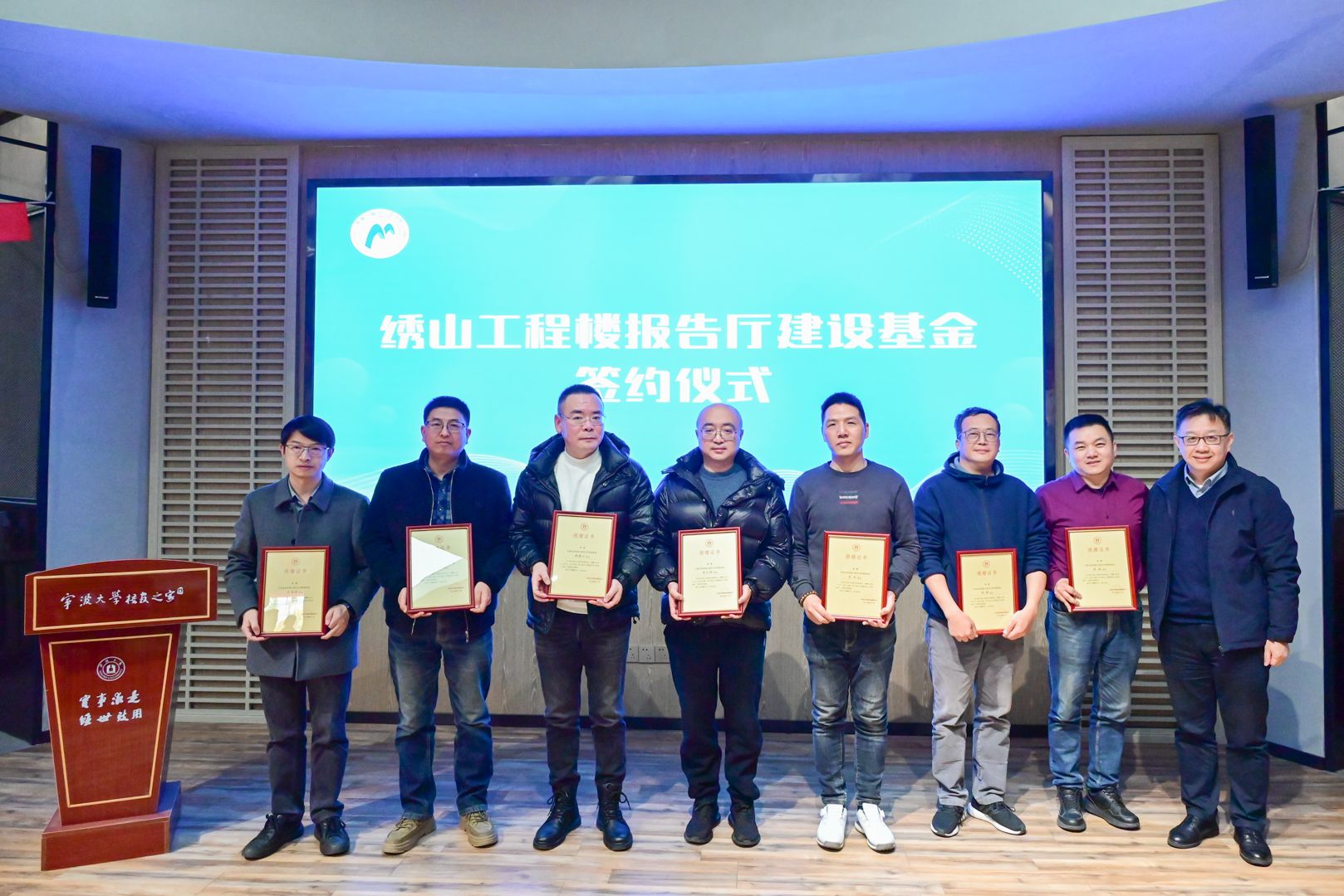 今年12月,为营造绣山工程楼更优雅、现代的学术交流舞台,学院发起了绣山工程楼报告厅募捐倡议,校友们积极响应、慷慨捐资,成功筹集了35万元善款,成立了“绣山工程楼报告厅建设基金”。大会上,2010级机械硕士研究生龚文炜作为校友代表与学院党委书记王智腾共同签署了捐赠协议书。李国平老师为王桂强等基金主要捐赠人颁发捐赠证书。