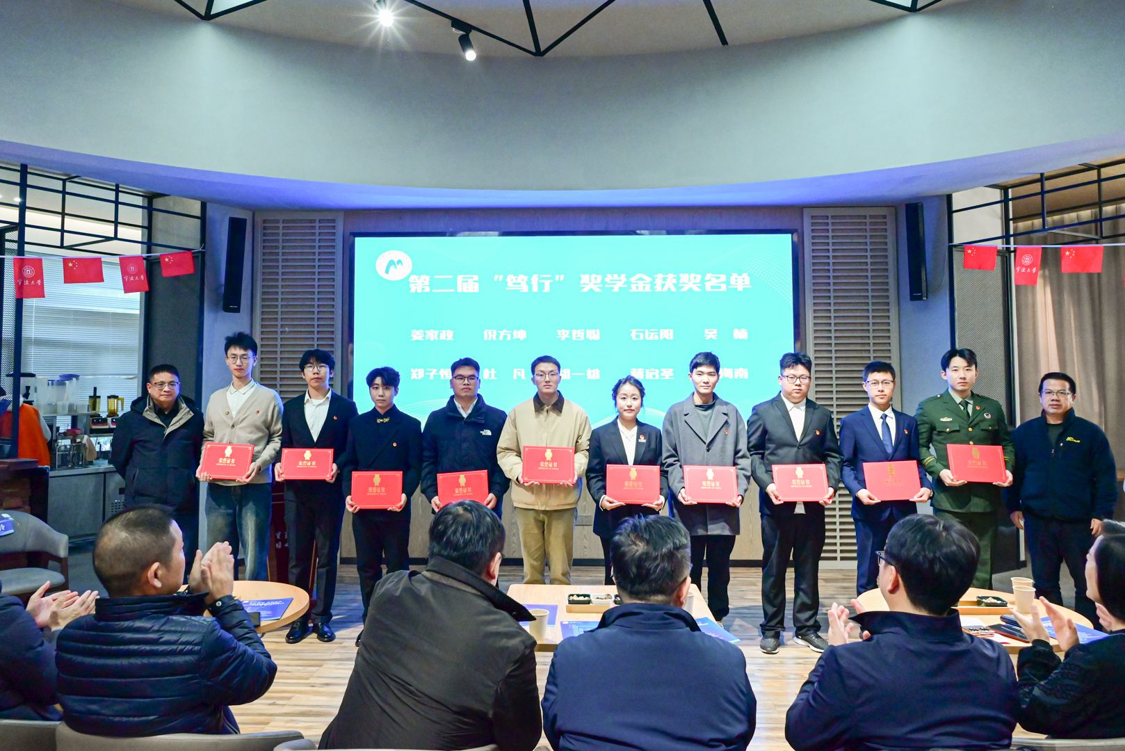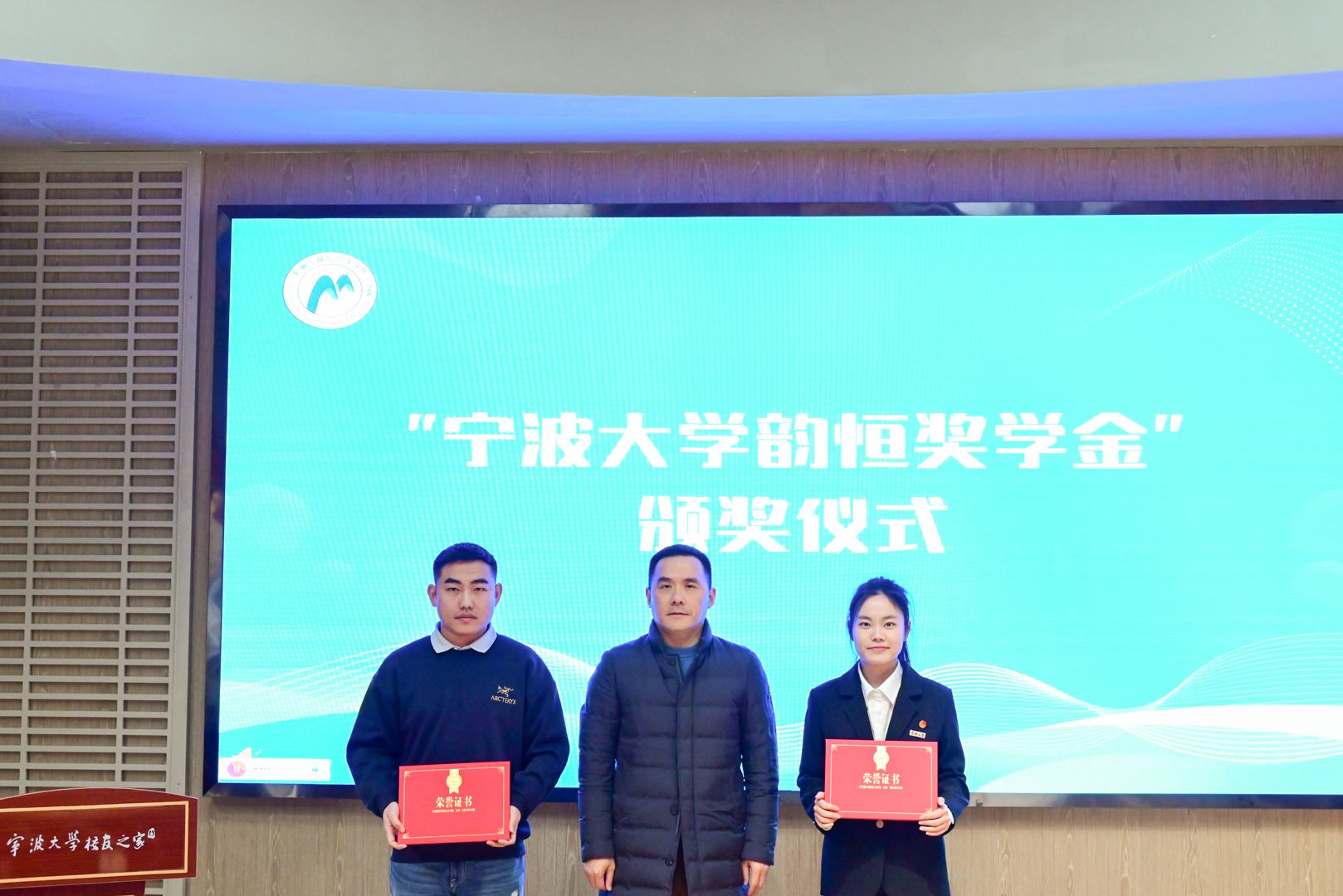 大会还举行了2024年“笃行”优秀学生干部奖学金颁奖仪式,张磊、马传军、潘志泉等校友受邀担任“笃行”奖学金评委。“韵恒奖学金”获得者王巍嵩进行了风采展示,现场介绍了自己的职业规划,赢得了校友们的阵阵掌声,谢立栋校友为“韵恒奖学金”获奖学生代表颁奖。