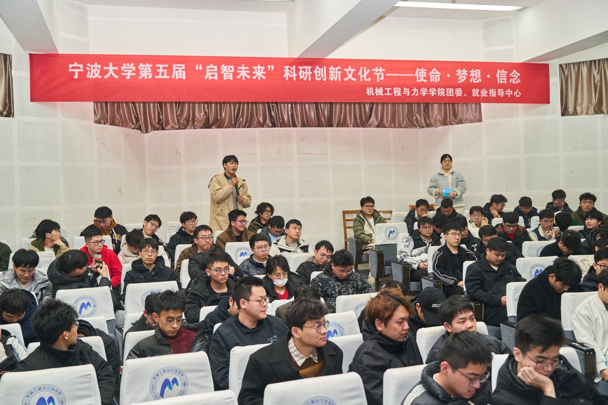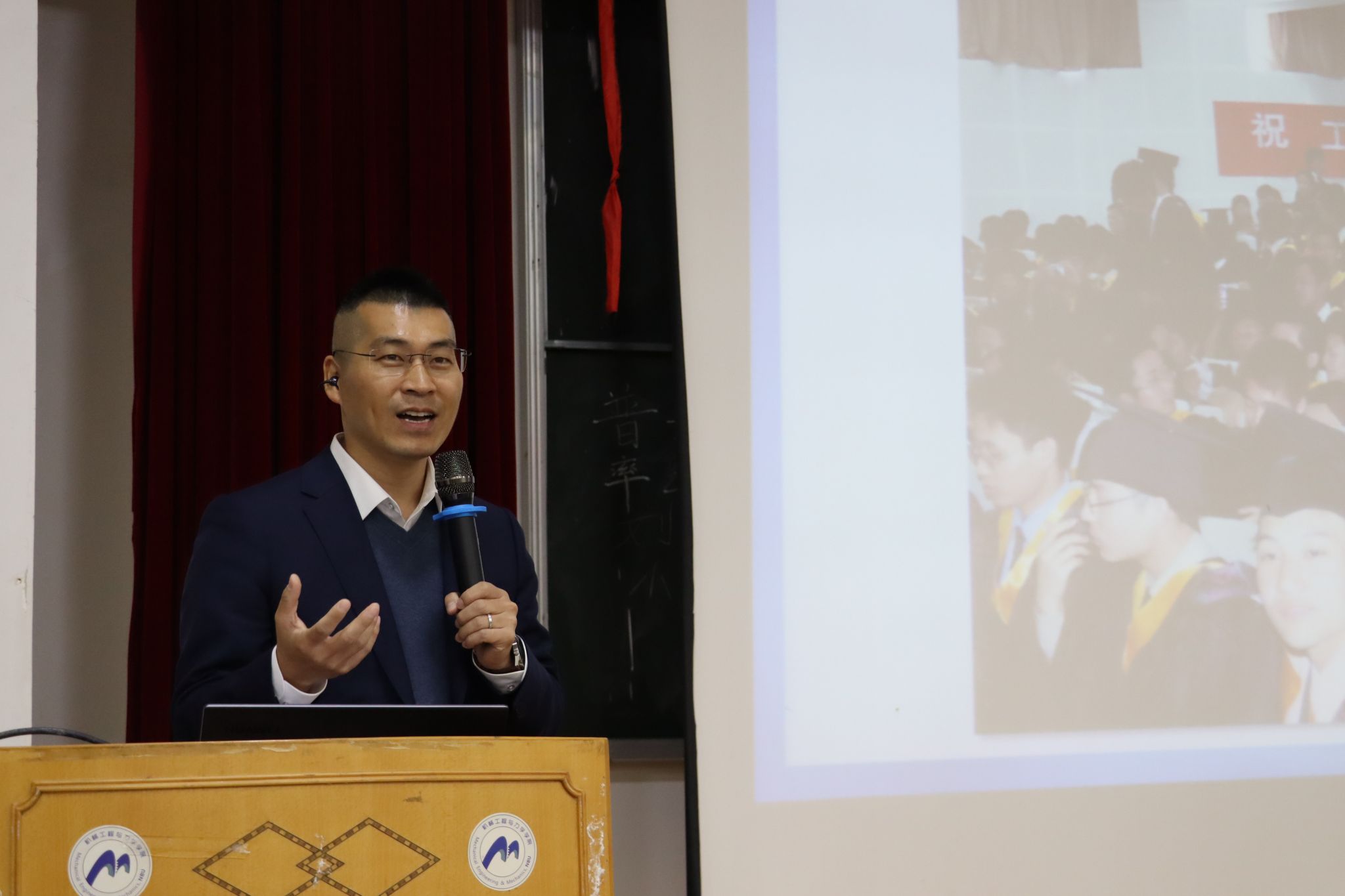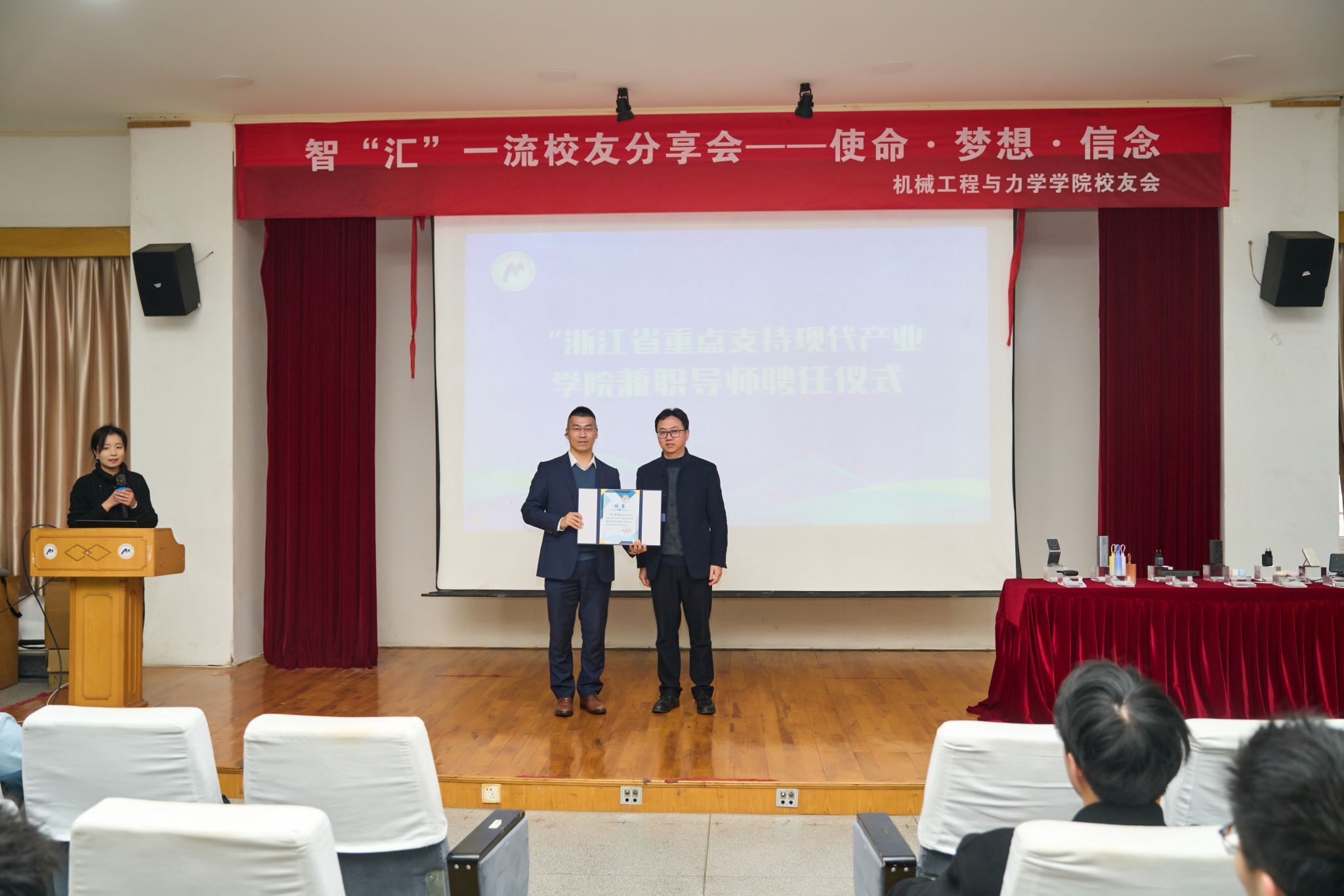 在绣山工程楼报告厅举行智“汇”一流校友分享会暨第五届“启智未来”科研文化创新节活动。2001级机械设计制造及其自动化专业校友、宁波市象山县政协委员、威迅集团创始人黄颂志受邀返校,与130余名师生共叙发展。学院党委书记王智腾、副院长彭文飞、学工办主任洪松等领导教师出席活动。