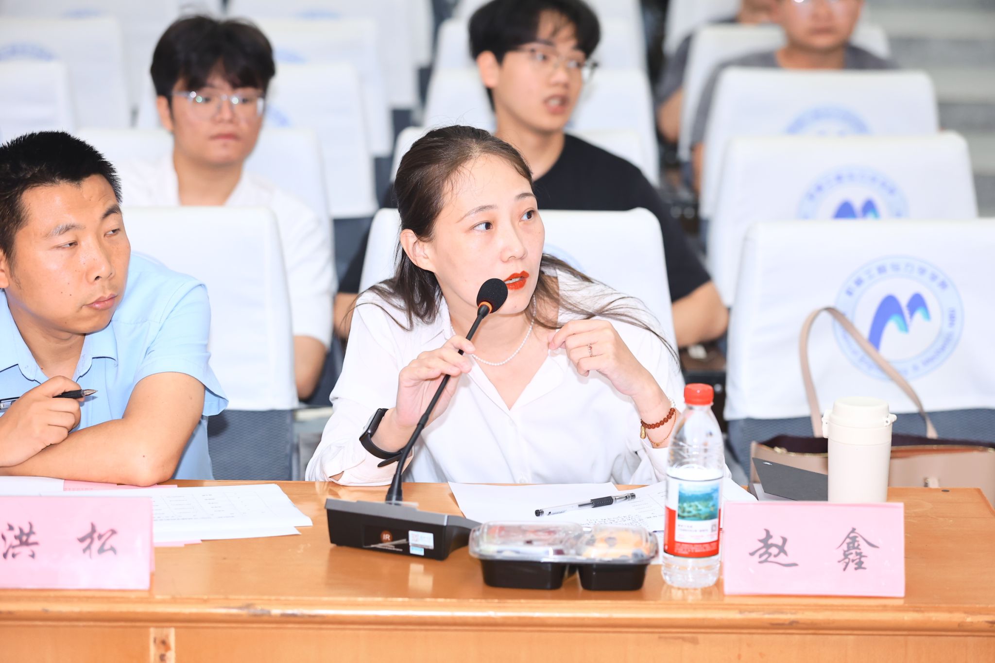 "校友-学子成长共同体"的育人特色。在场评审老师结合同学们的答辩内容进行陈述问辩。