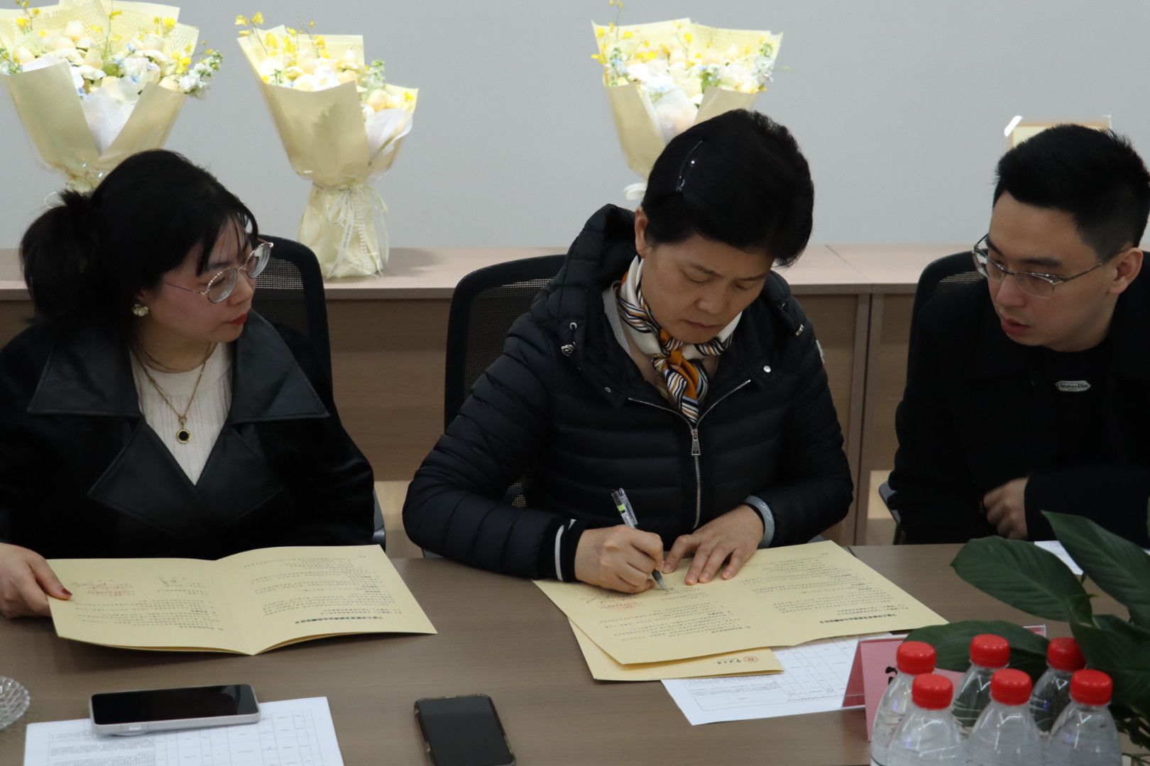 讲话结束后,张萍女士签署了捐赠协议,正式确立了新一轮的资助合作。为表达由衷的谢意,受助学生代表向张萍女士、励岷翰先生敬献了鲜花,沈妍伶副书记则代表学院向捐赠方赠送了捐赠证书。随后,全体受助学生与捐赠方嘉宾共同切开了寓意美好相遇与感恩的蛋糕,现场气氛温馨热烈。