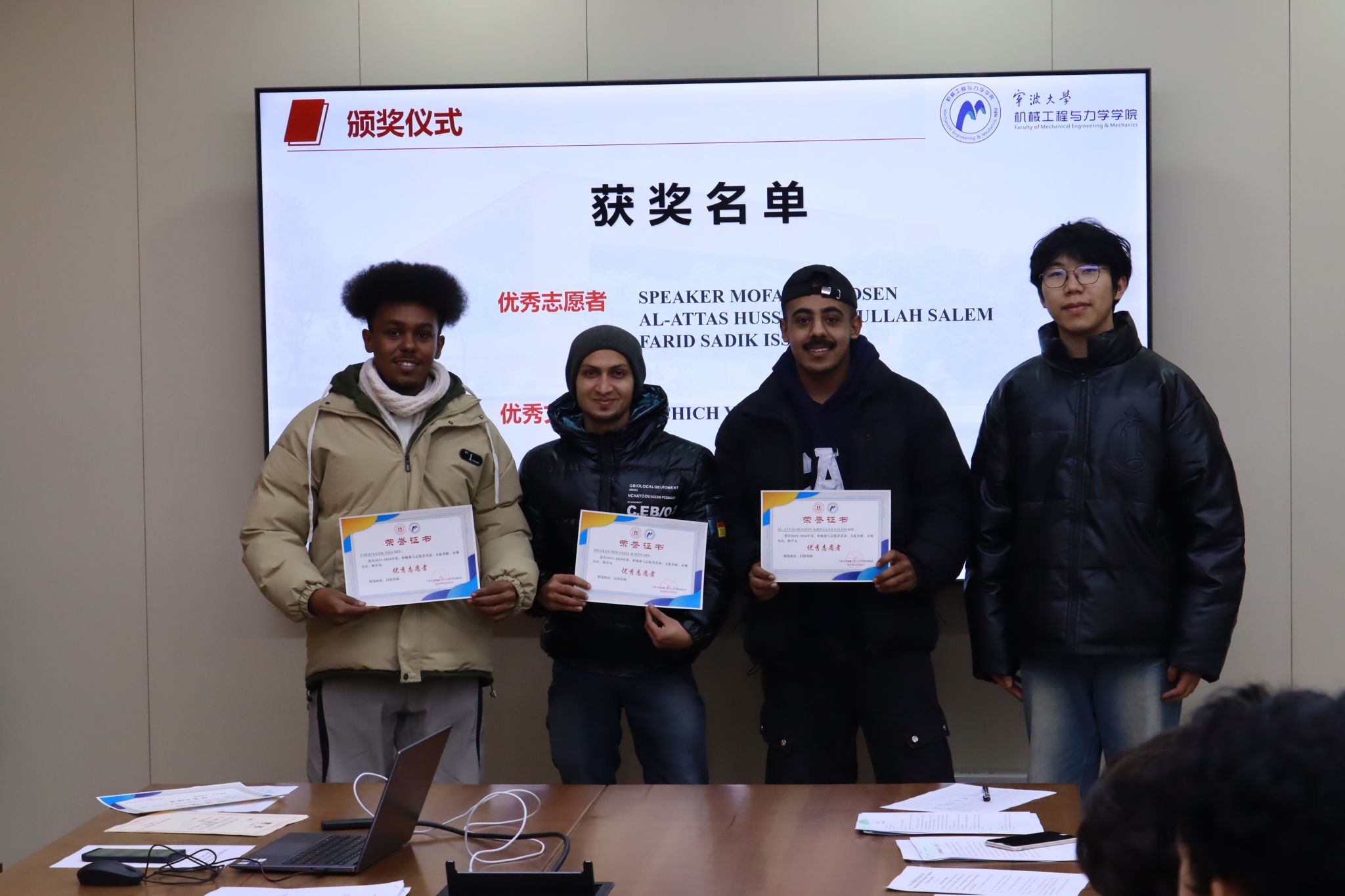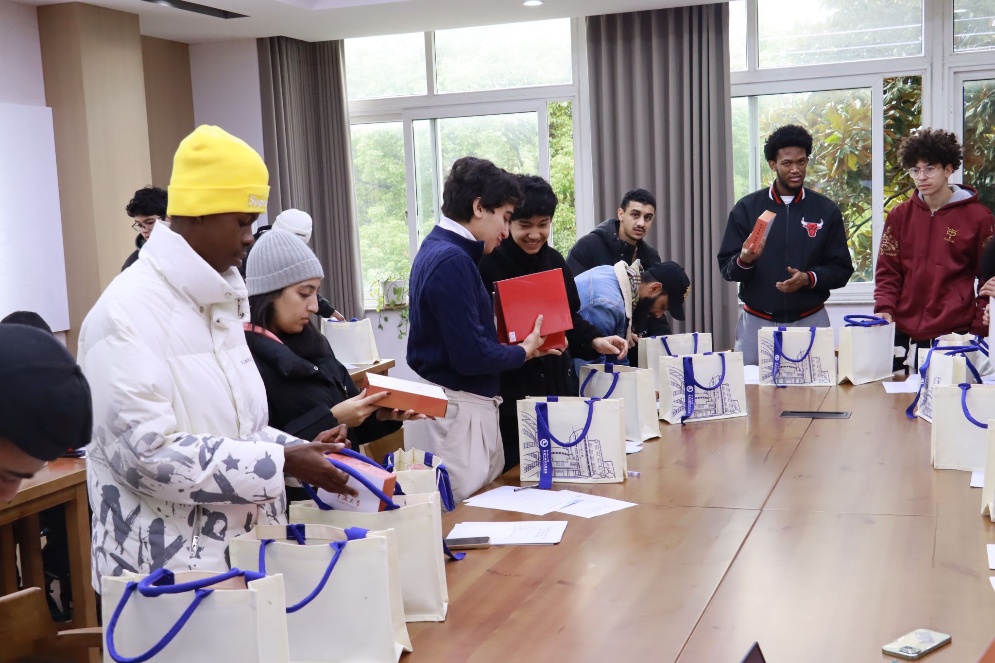 沈妍伶老师代表学院表示了慰问,给全院国际学生送上新春祝福和新年慰问品,同时也提出了三点要求。第一,严格遵守校园管理制度,提高安全防范意识,明确“保证自身安全健康是对学校和中国负责”。第二,充分利用期末和假期进行合理规划,在提升自己的同时,多帮助他人,多做有意义的事。第三,遇到困难或突发情况要第一时间联系学院,寻求帮助。