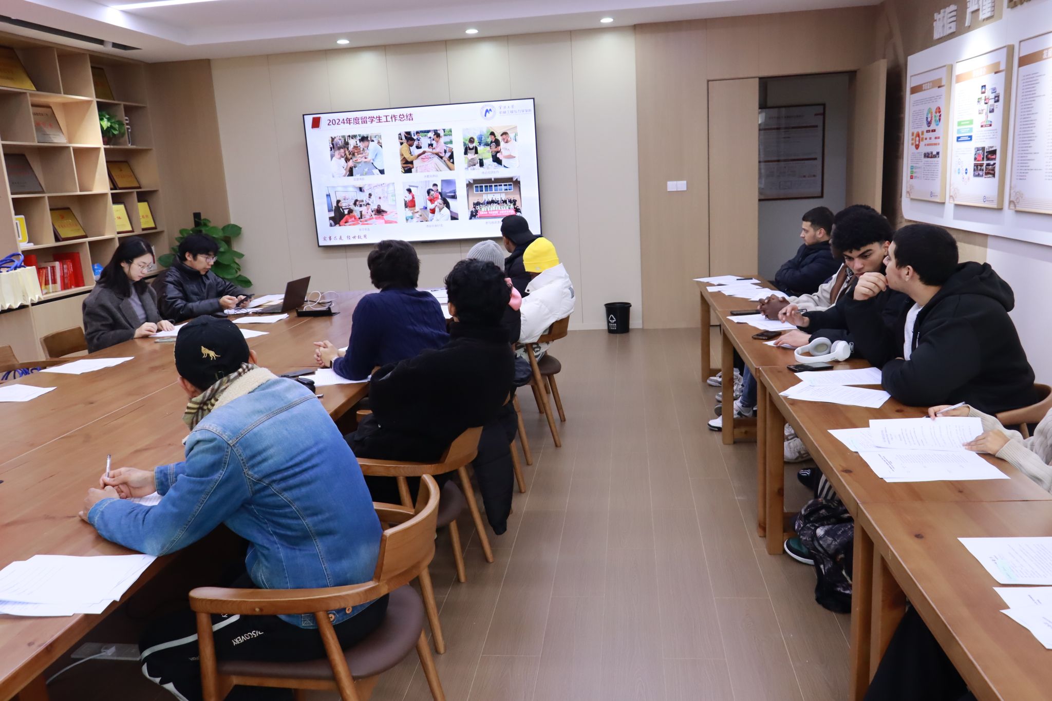 寒假将至,为进一步增强我院国际学生的安全防范意识,让留校国际学生度过一个安全祥和的假期,12月25日下午,我院国际部组织召开国际学生安全警示教育大会暨“迎新年 送祝福”慰问活动。学院党委副书记沈妍伶、辅导员晏程程以及全院20余名国际学生参加了本次会议。