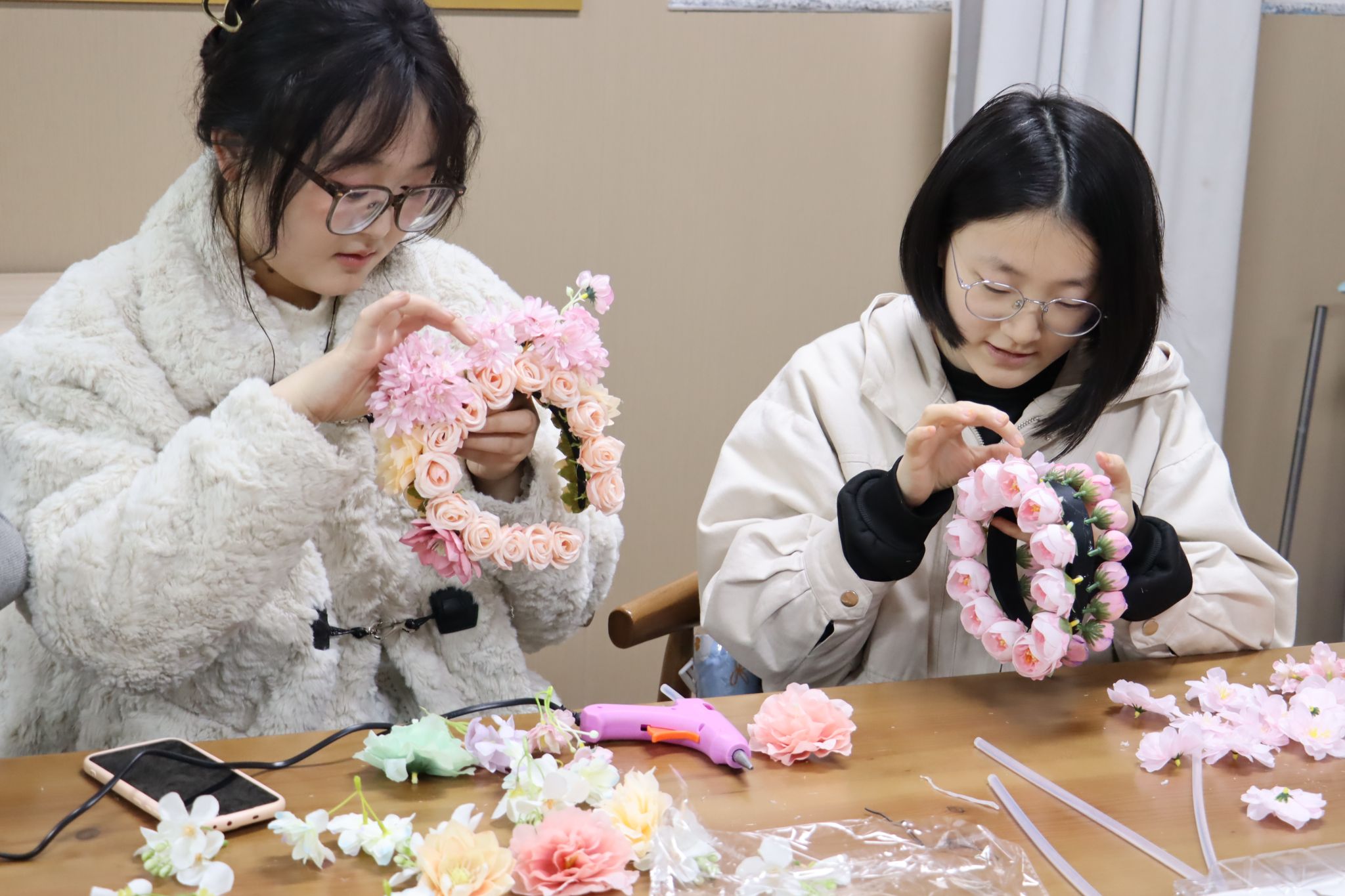 妇联联动“匠心育人”心理健康教育辅导站、学生会在绣山工程楼220举办了“巧手簪花庆佳节,巾帼芳华绽绣山”主题簪花活动。