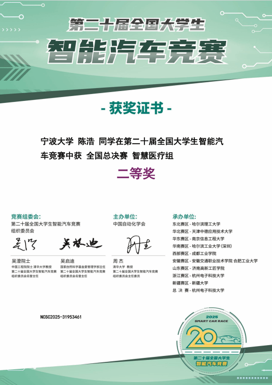 机械学子获第二十届全国大学生智能汽车竞赛全国总决赛智慧医疗组二等奖(2025年)