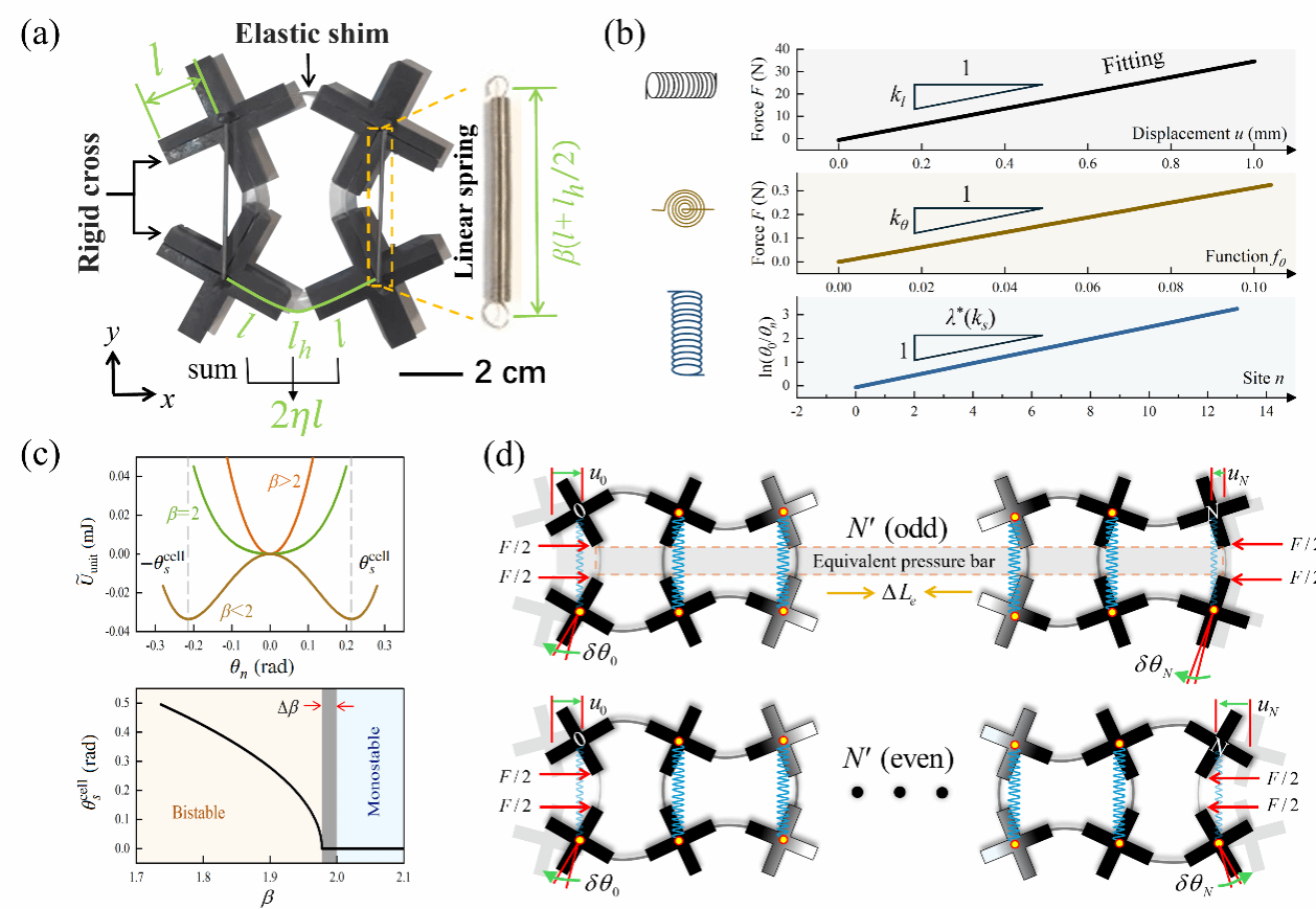 马廷锋教授课题组在固体力学旗舰期刊《Journal of the Mechanics and Physics of Solids》上发表学术论文“Anomalous size effects with fixed criticality in bistable flexible mechanical metamaterials” (J. Mech. Phys. Solids. 106296 (2025) ),通过理论和实验手段系统地研究了双稳态力学超材料中的反常尺寸效应,在定量层面上揭示了该反常效应。