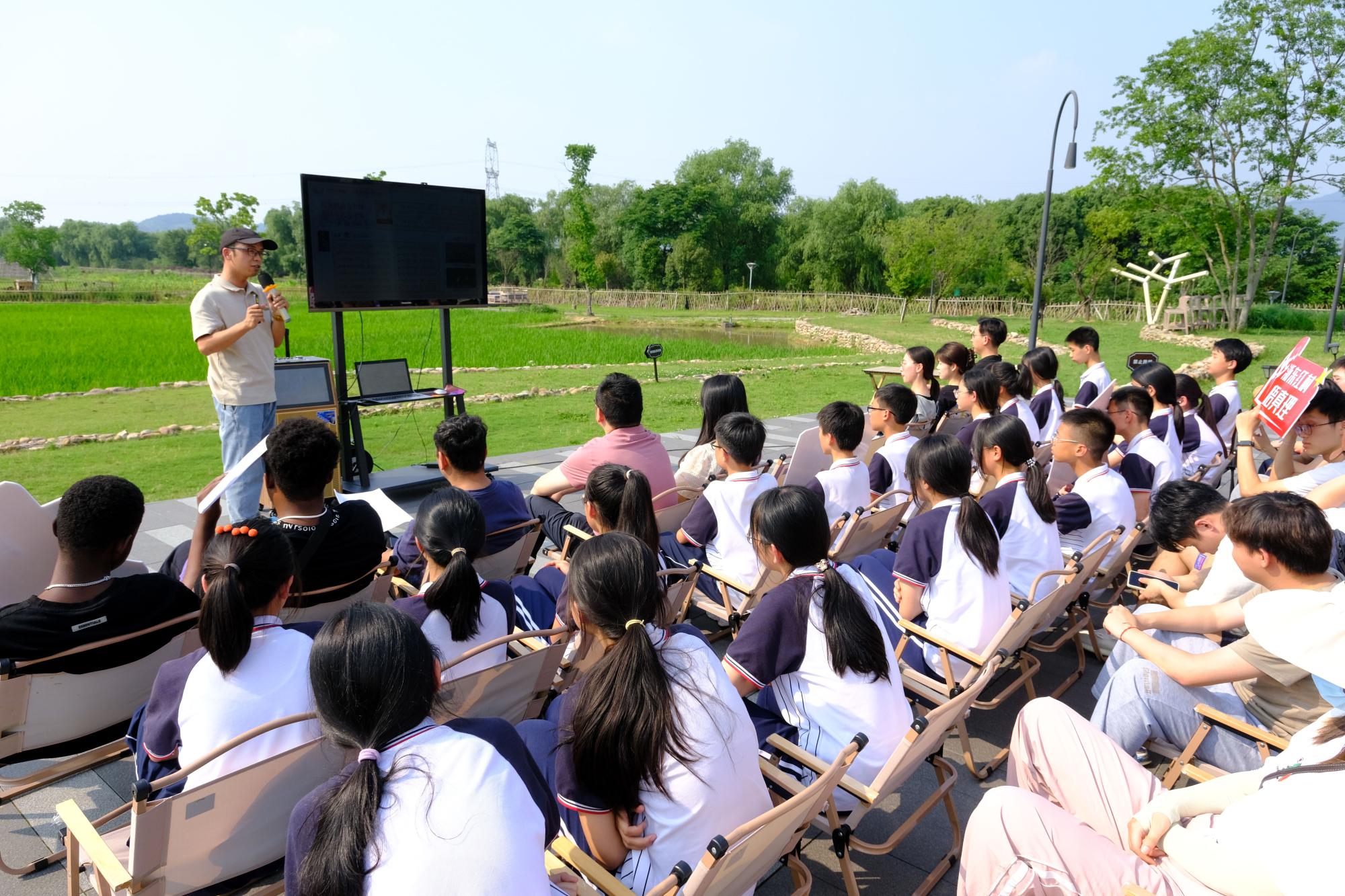 力学科普宣讲团成员李科斌老师在余姚市初新农场,为梁弄镇初级中学的孩子们和成人韩漫