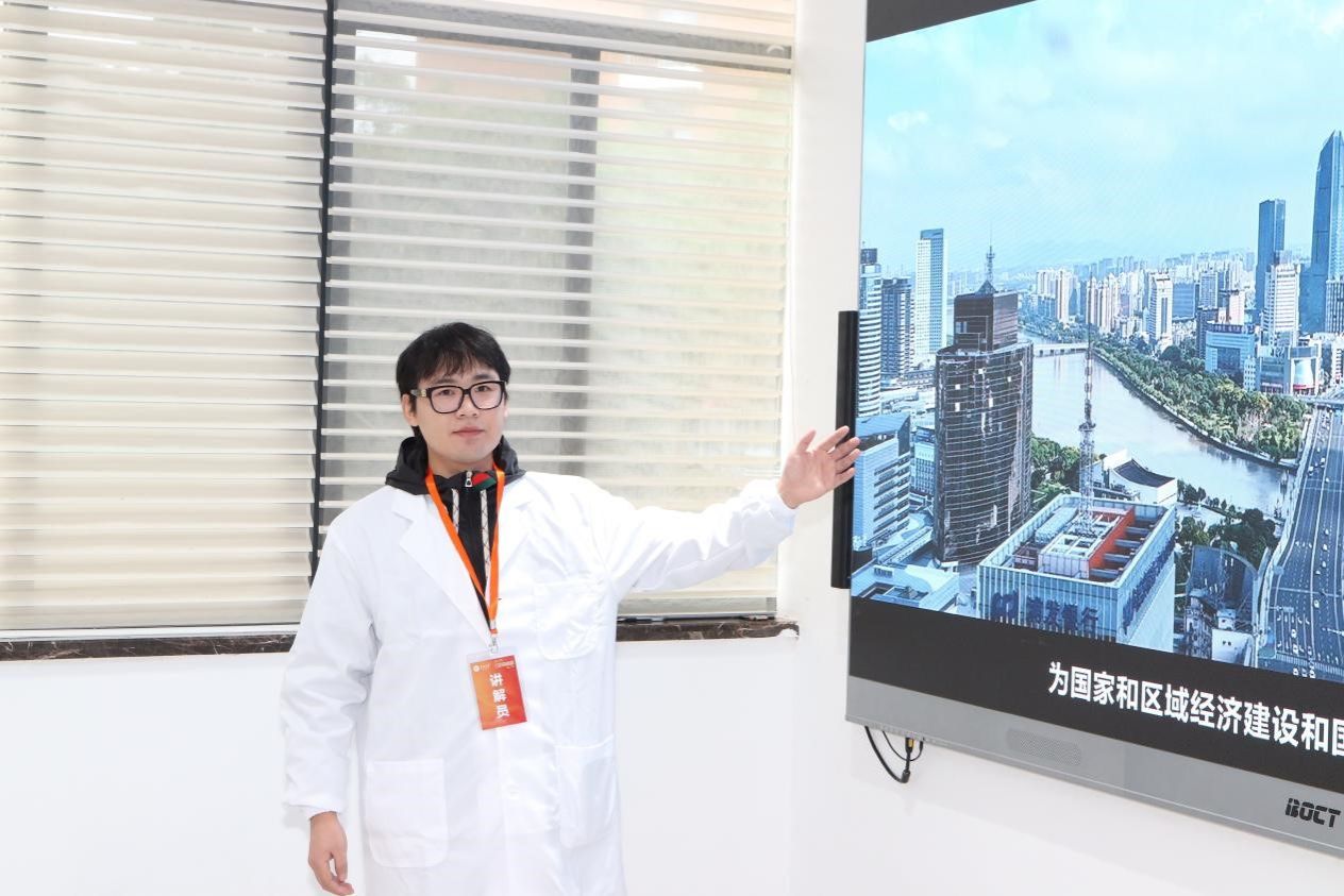 参观伊始,所有同学聚集在大厅里观看实验室的简介视频,23级力学博士生舒典强作为此次的讲解员,配合宣传视频,为大家简要介绍了实验室的成果。在提及前不久发布的大桥防撞顶级成果、浙江大学等知名学府倾力援建、承担课题含金量逐年递增时,讲解员不由得面露笑容,自豪满满。