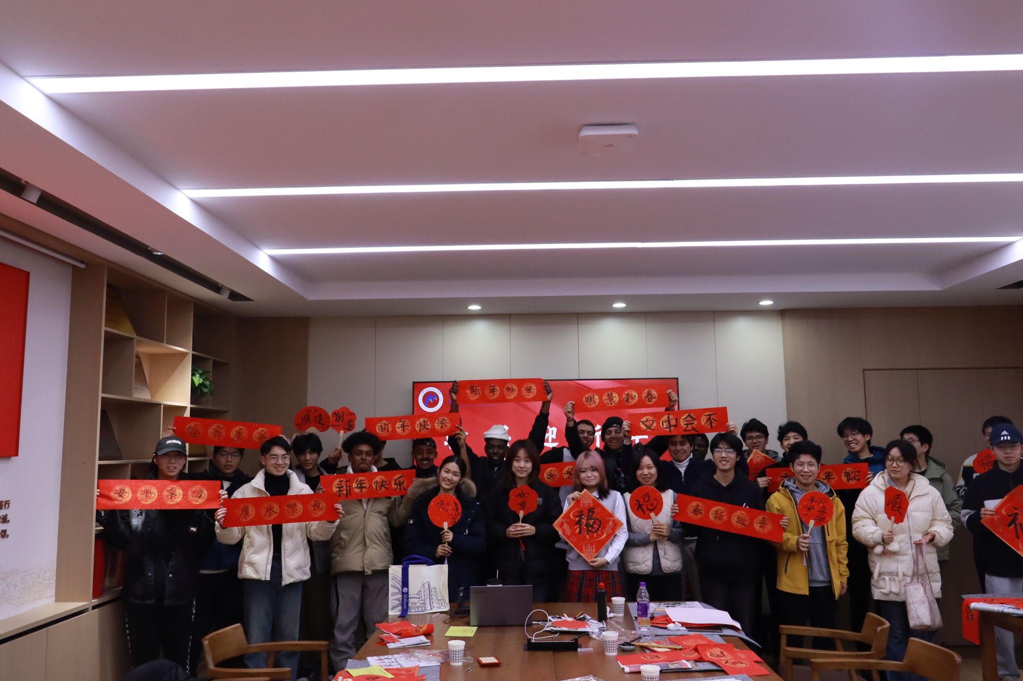 “匠心育人”心理健康教育辅导站在绣山工程楼208会议室举办“翰墨迎新年,妙笔展风华”书法体验活动。本次活动由机械工程研究生第九党支部、工业工程与机械国贸专业本科生党支部共同承办,共有20余名中外学生参与。