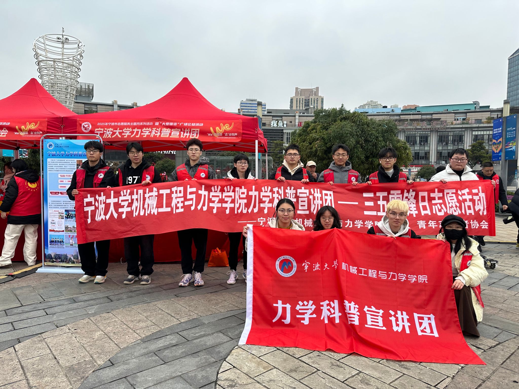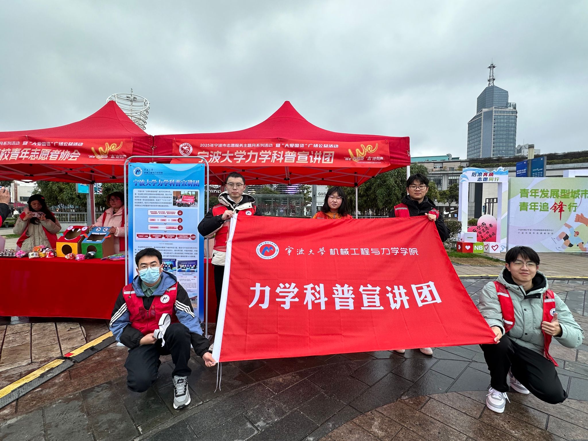 3月5日,在全国第62个“学雷锋纪念日”之际,我院力学科普宣讲团在天一广场参与了由宁波市委社会工作部、宁波市国资委、共青团宁波市委等单位主办的“‘We’光成炬‘志’地有声”志愿服务活动。此次活动旨在深入学习贯彻关于弘扬雷锋精神的重要论述,进一步引导青年志愿者弘扬“奉献、友爱、互助、进步”的志愿精神,力学科普宣讲团以其专业的力学知识和有趣的科普活动,成为活动现场的一大亮点。