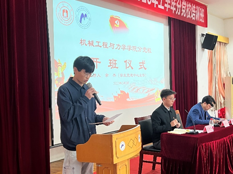 在绣山工程楼三楼报告厅举行第28期预备党员培训班、第13期发展对象、第35期积极分子培训班开班仪式,院党委书记王智腾、学院专职组织员褚慧丽、各学生党支部书记和本期党校学员参加了开班仪式,会议由党建辅导员余杰主持。