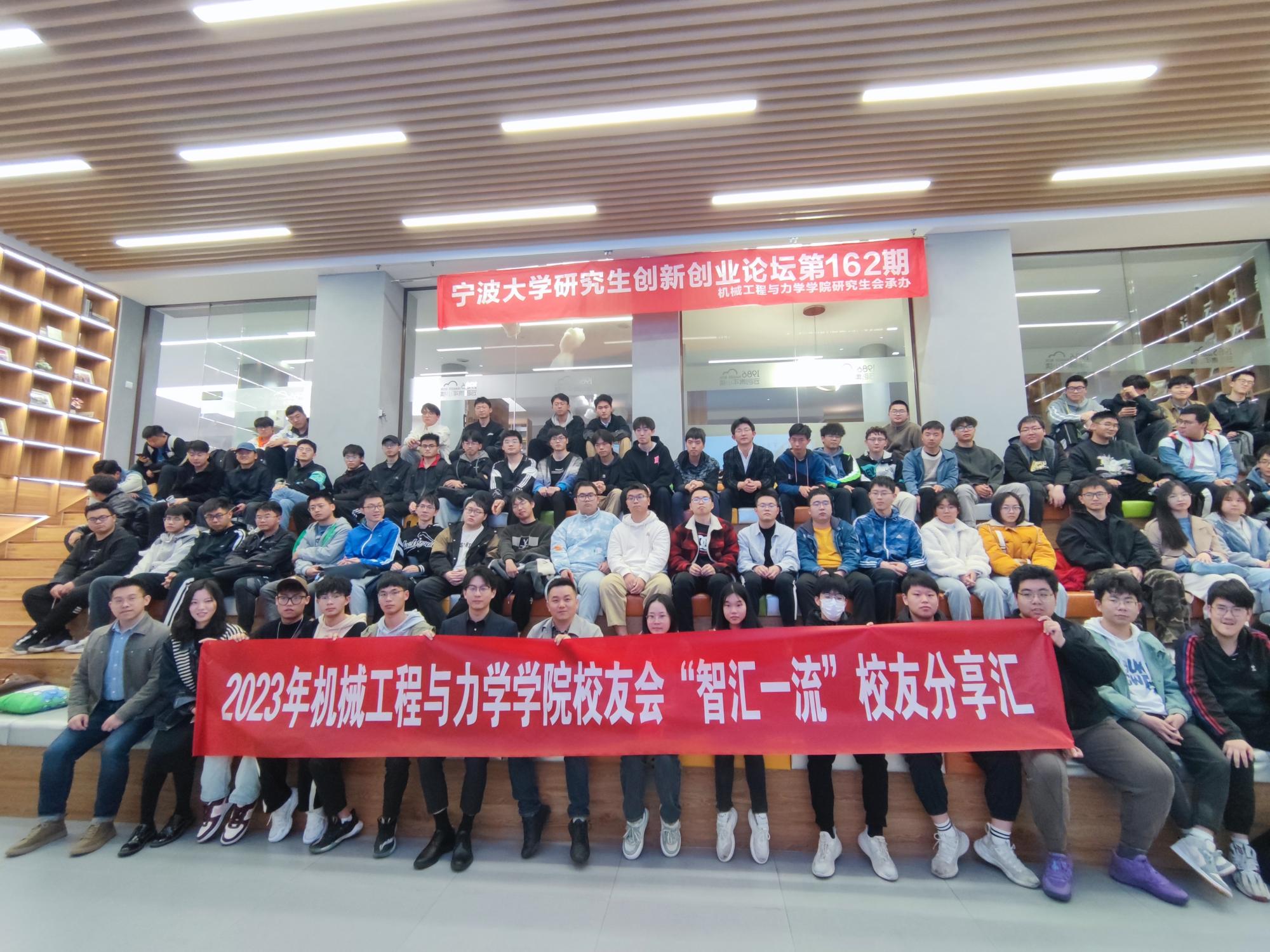 校友会于云创小镇无问书咖举办了 “智汇一流·校友分享汇”系列活动之“机械人的创业就业之路”校友主题讲座。2001级机械设计制造及其自动化专业校友、宁波埃科瑞特机械有限公司总经理陈胜、2014级机械设计制造及其自动化(国际贸易班)专业校友、夸父科技管委会委员/抖音销售部负责人俞华清应邀返校,为学弟学妹们分享求职创业经验。讲座由学院就业指导中心主任陈乐鸣主持,学院党委副书记沈妍伶出席,学院本科生、研究生共90余人参加了本次活动。