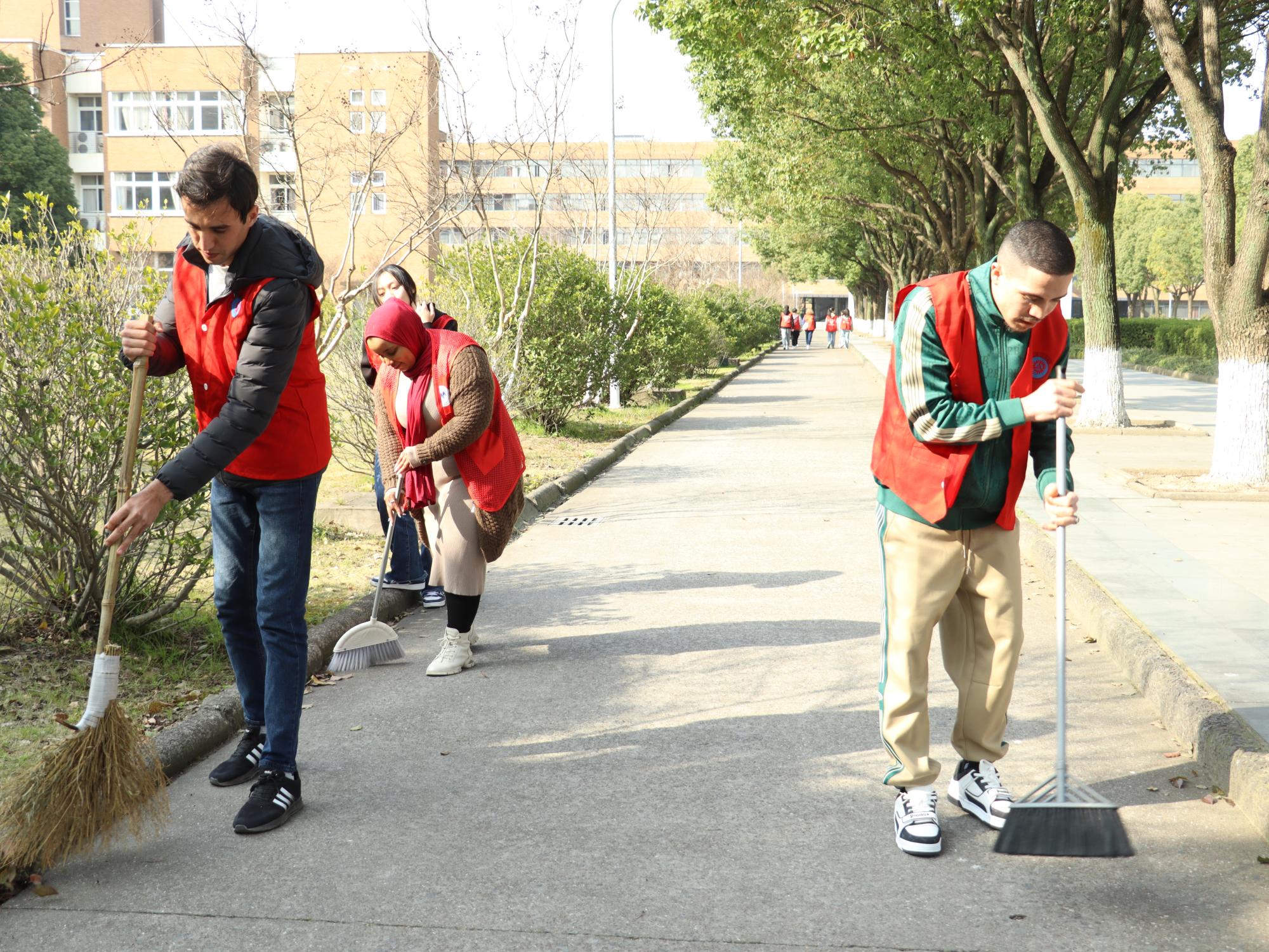 活动最后,中外学生一起去教学区进行垃圾清洁,在学思践悟中弘扬雷锋精神。