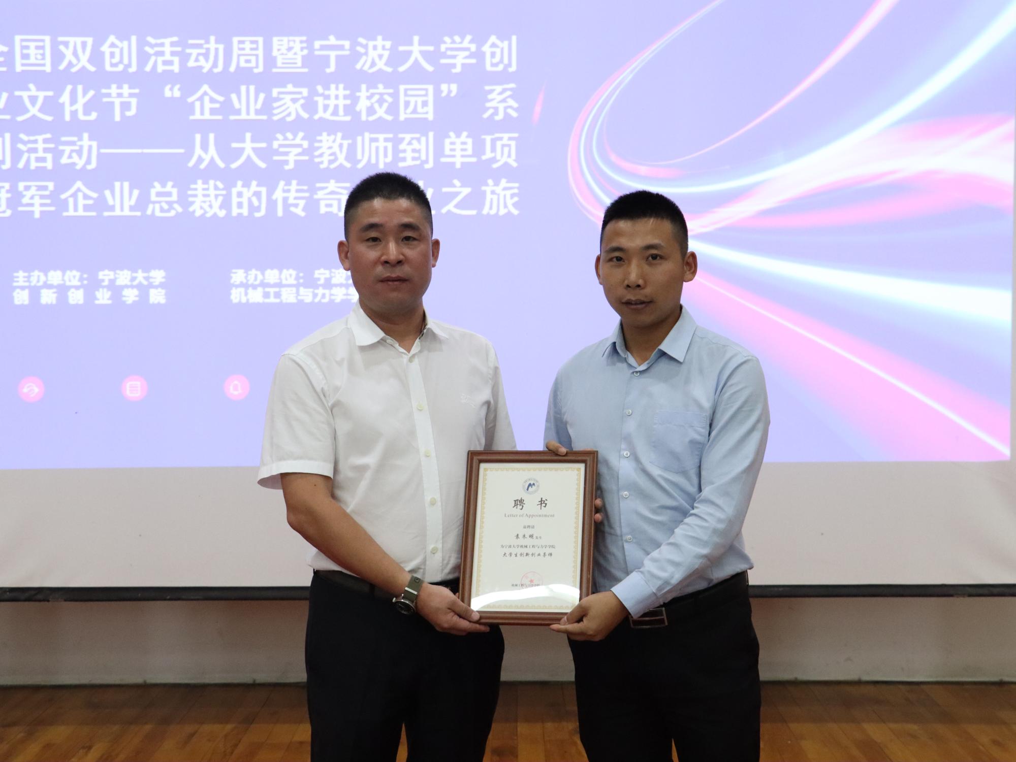 本次讲座,由浙江摩根智能技术有限公司执行总裁袁朱明先生主讲,共吸引了院内外150余名本硕学生现场参与。活动伊始,袁朱明总裁分享了自己的求学创业经历,并简要介绍了目前所在国家级单项冠军企业杜亚电机和省级新一代信息技术与制造业融合发展试点示范企业摩根智能的历史沿革、发展现状和业务类型。讲座中,他以“责任”“有为青年”为关键词,阐述了自身对何为有为青年的理解,以及当前背景下,如何成为有为青年的独特看法,并多次引用著名作家路遥在《平凡的世界》《人生》等知名小说中的语句,告知在场学生要心中有信仰,树立“不怕苦、不怕累、不要迷茫”的正确三观,同时明确确立青年时代的目标任务。期间,袁总还与同学们就如何增强大学生竞争力、怎样获得面试加分项和在校期间长远目标与短期目标的确立与平衡等问题进行了交流互动,亲切随和实用且具有思辨性的讲演与回答,获得现场学子的阵阵掌声。为进一步加强学院学生创业创业实践能力指导,活动现场还为袁朱明总裁颁发了大学生创业创业导师聘书。