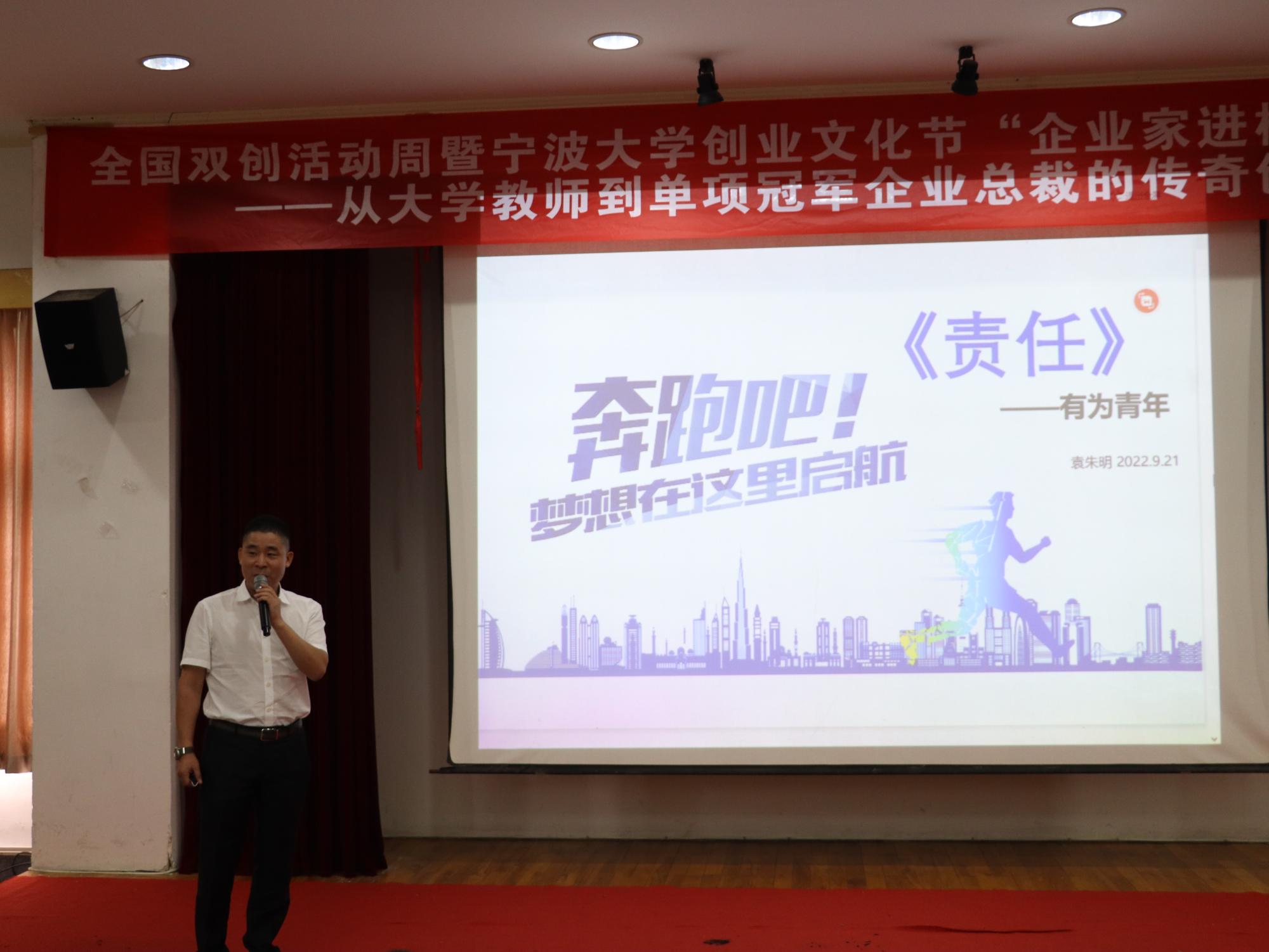 在绣山工程楼三楼报告厅举行主题为“从大学教师到单项冠军企业总裁的传奇创业之旅”的创新创业教育主题讲座。