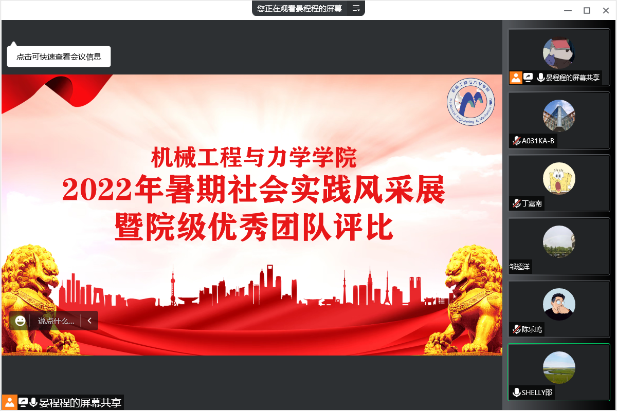 暑期社会实践优秀团队评比活动顺利举行。学院党委副书记、纪委书记邵丽,团委书记、学工办主任洪松及全体辅导员,2021年成人韩漫
