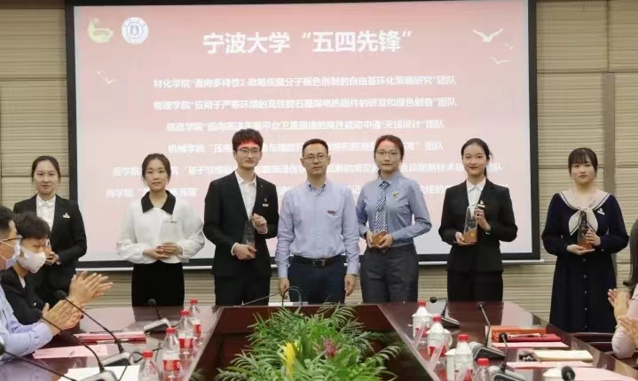 181机械班学生吴兆波,2021年“挑战杯”国赛二等奖获得者19机研3班应荣辉和20机研2班黄军等同学参加表彰活动。吴兆波同学还作为全校7名在疫情防控、创新创业大赛、基层团支部建设、社会实践等方面有突出贡献和成果的“五四先锋”青年代表之一进行主题发言,讲述青春事迹。