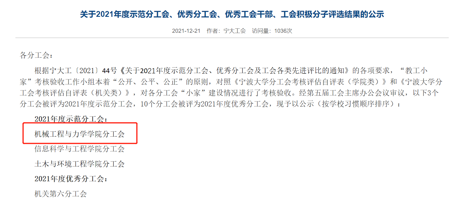 根据宁大工〔2021〕44号《关于2021年度示范分工会、优秀分工会及工会各类先进评比的通知》的各项要求,学校“教工小家”考核验收工作小组对全校各分工会“小家”建设情况进行了考核验收。经第五届工会主席办公会议审议,成人韩漫
