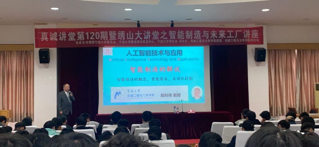 高端智能机器人研究所所长、博士生导师陈科伟教授受邀担任主讲人,给宁大学子分享自己对人工智能的钻研,并为其答疑解惑。