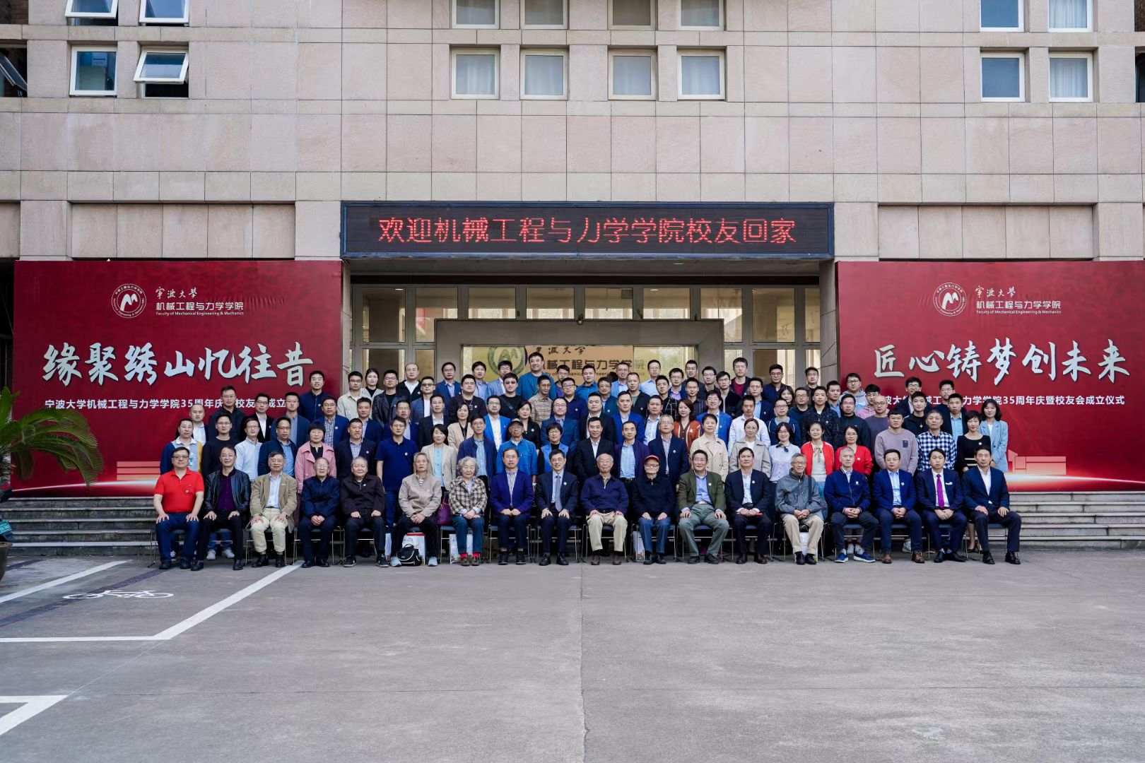 副校长、原机械工程系主任叶飞帆,学校地方校友会代表、学院战略合作单位代表、历届院领导和离退休教师代表、毕业校友和在校师生代表等150余人现场参与庆典活动。