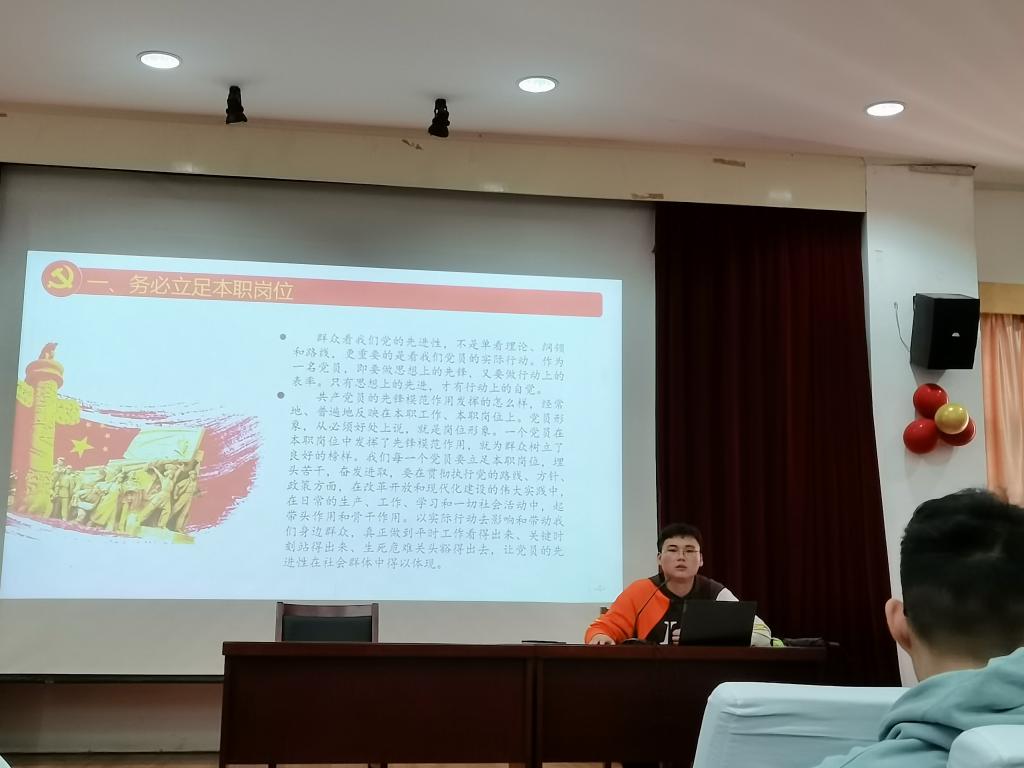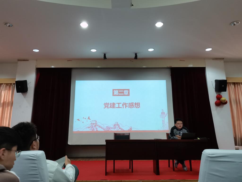 陈啸谷同志以《话经验,共成长》为题,从“立足本职工作”、“善于学习”、“勇于创新”、“乐于奉献”四个方面展开分享。他谈到作为一名党员,既要做思想上的先锋,又要做行动上的表率,更要不断提高创新潜力,成为时代的先锋。张希同志以做有觉悟、有本领、有作用的共产党员为主题进行了分享,鼓励同学们要多参加各类活动,提高自己的积极性,用自己的实际行动去带动身边的同学。许佳超同志从自己的入党经历讲起,与大家分享了其从开始接触党建工作到担任学生党支部书记,再到获得“优秀共产党员”荣誉的心路历程,提醒同学们要时刻不忘入党动机,坚定理想信念。