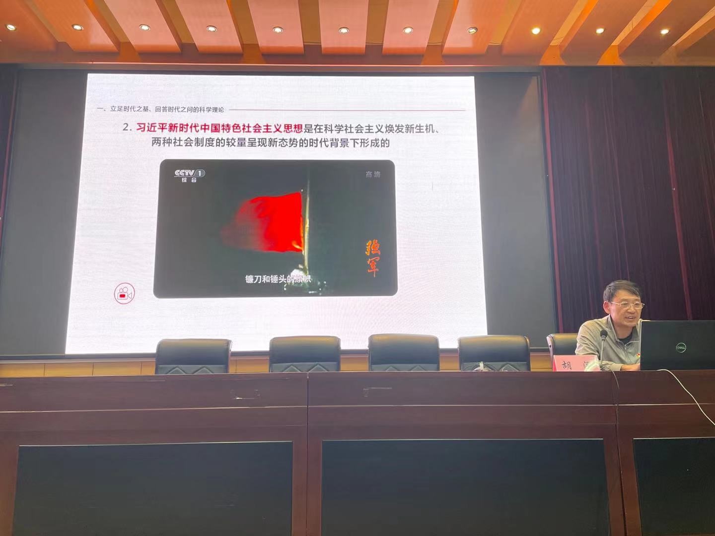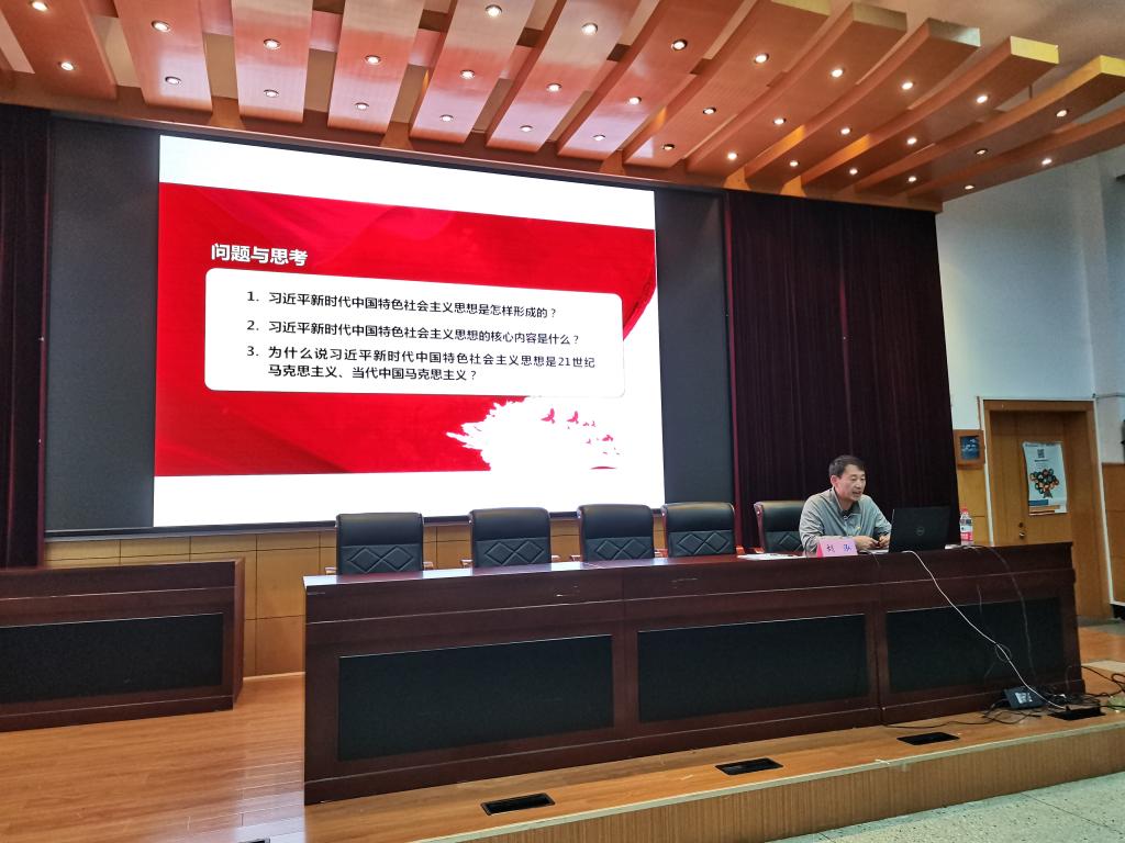 分党校培训班第一讲《习近平新时代中国特色社会主义思想是党和国家必须长期坚持的指导思想》在李达三外语楼报告厅举办,学院党委书记、分党校校长胡泓担任主讲人,90名入党积极分子聆听了党课。