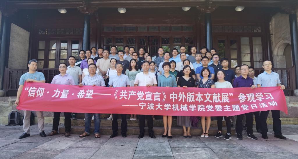 党委领导班子和教师党员共50余人赴天一阁开展“信仰·力量·希望——《共产党宣言》中外版本文献展”参观学习活动。此次展览由中共宁波市委宣传部指导,宁波市文化广电旅游局主办,在天一阁·西园展出。