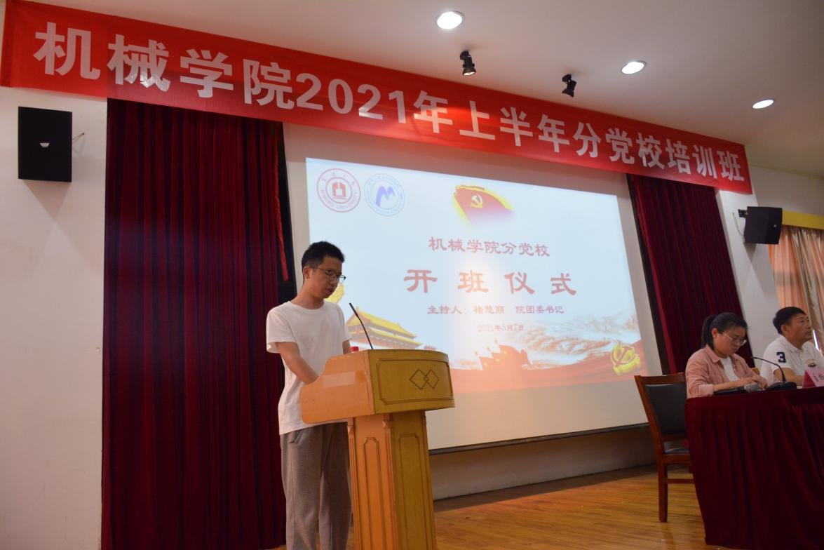 为进一步加强我院学生入党的培训工作,深化党的基本理论知识的学习及教育,同时为更好贯彻落实党史学习教育要求,引导广大党员学史明理、学史增信、学史崇德、学史力行,5月7日,机械学院在绣山工程楼三楼报告厅举行第24期预备党员培训班、第9期发展对象、第31期入党积极分子培训班开班仪式,学院党委书记胡泓、专职组织员张勇、团委书记褚慧丽、各学生党支部书记和本期党校学员参加了开班仪式,会议由褚慧丽主持。