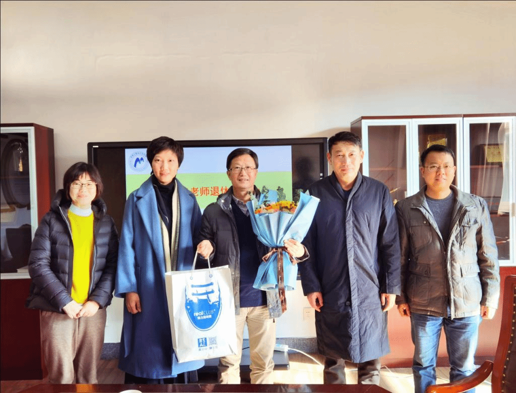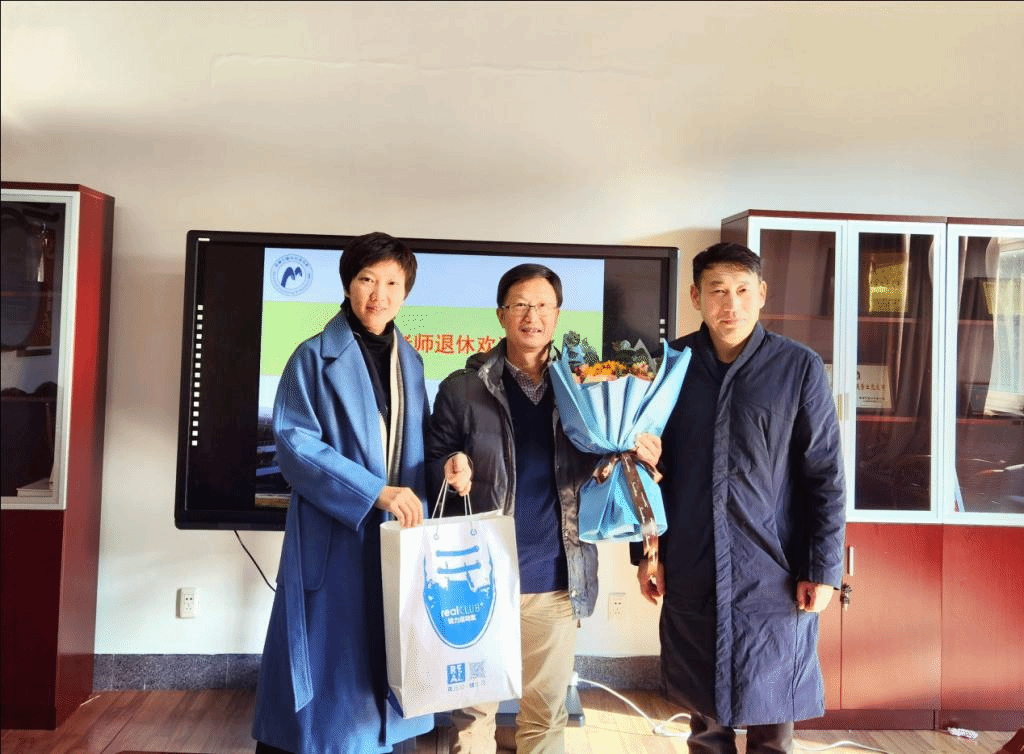 胡书记、邵书记代表学院与分工会向孙老师献花、赠送纪念品,祝愿孙宝寿老师退休后的生活能更加多姿多彩,身体健康,幸福美满!