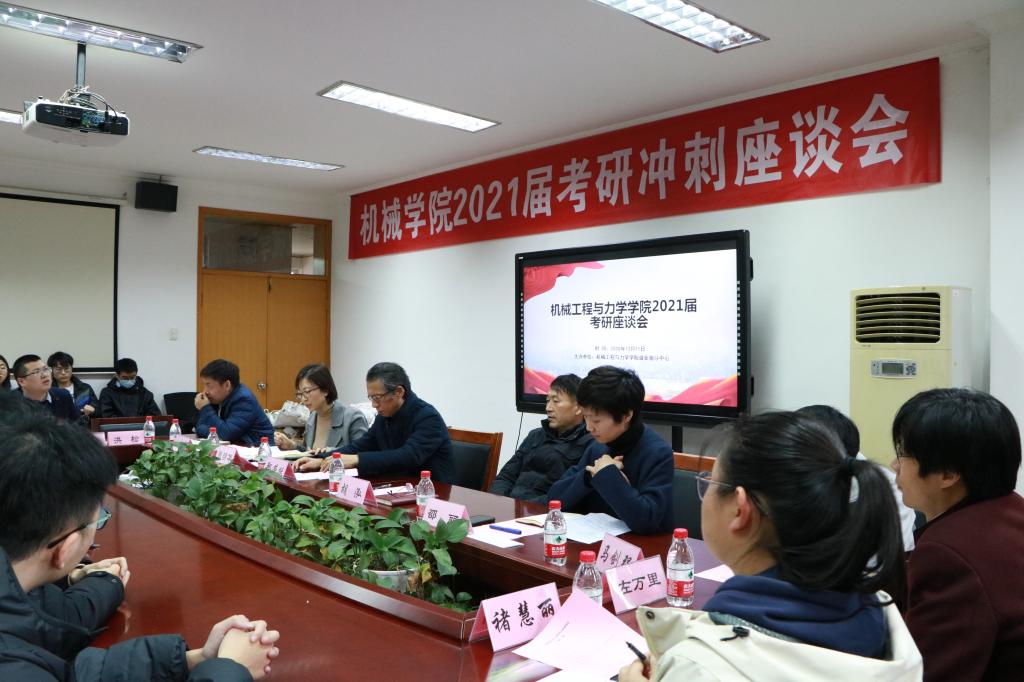 2021届考研冲刺座谈会在绣山工程楼208会议室顺利举办。本次活动旨在为本院考研学子在寒冷的冬日里送上考研冲刺温暖礼包、听取考研同学珍贵建议、预祝考研同学成功上岸。本次考研座谈会得到了学院领导、老师的大力支持,学院党委书记胡泓、院长郑荣跃、党委副书记邵丽、副院长张明华、彭文飞悉数出席,参加座谈会的还有学院各系主任、学工办辅导员和30余位考研学生代表。会议由学院就业指导中心主任张万兵主持。