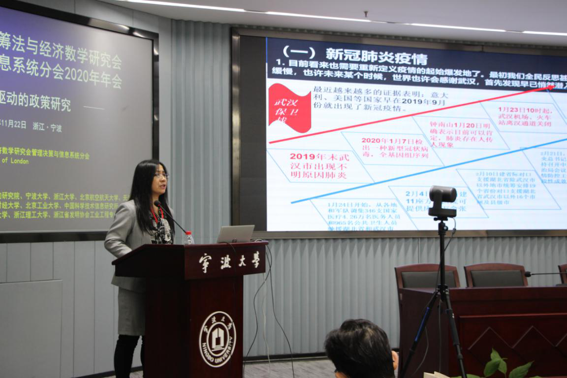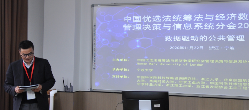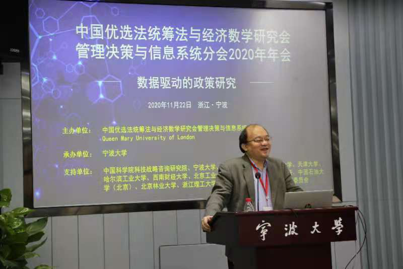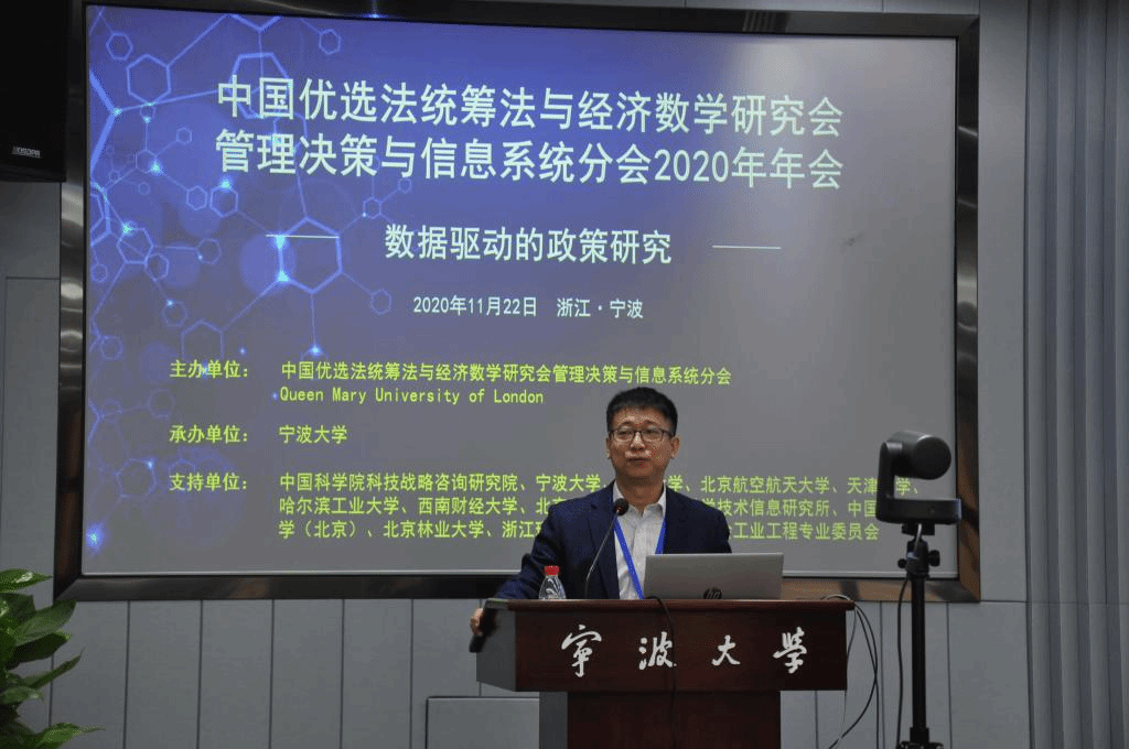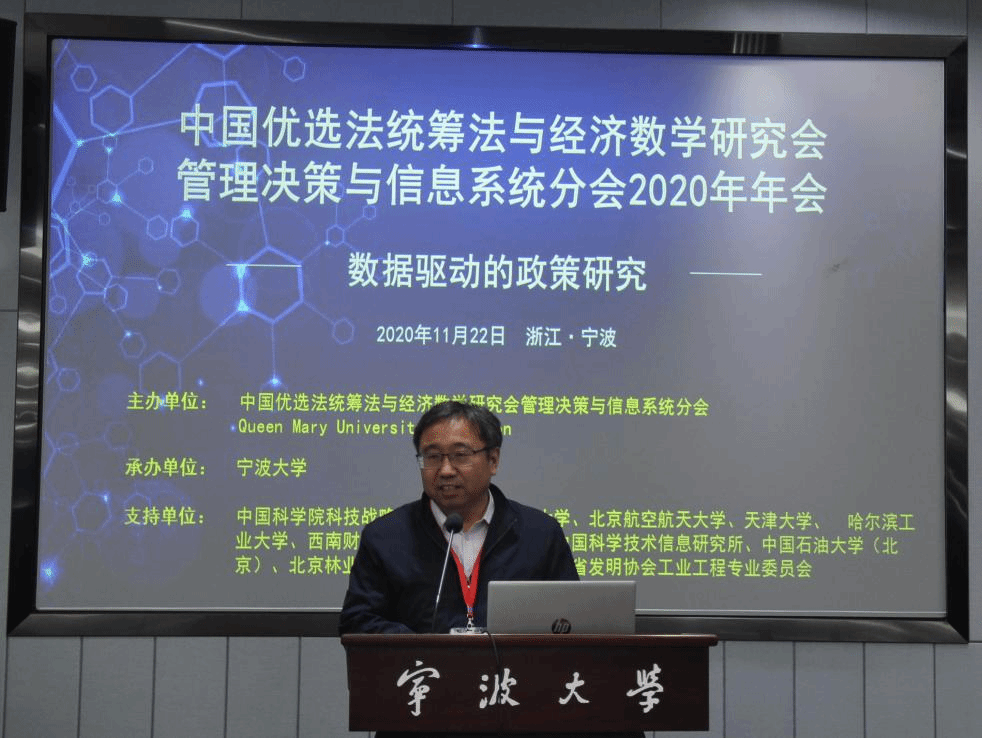 副校长姚菊明教授通过视频在线致辞,他向与会人员表达欢迎与感谢,简要介绍了宁波的发展历史及在学科建设、人才培养、科学研究等方面的情况,并希望借此会议机会,推动学校在管理、决策与信息系统领域科研工作的快速发展。之后,管理决策与信息系统分会会长关忠诚研究员致词,对筹备和参与年会的老师和同学们表示感谢,并回顾了中国优选法统筹法与经济数学研究会及分会的发展历程和成就。