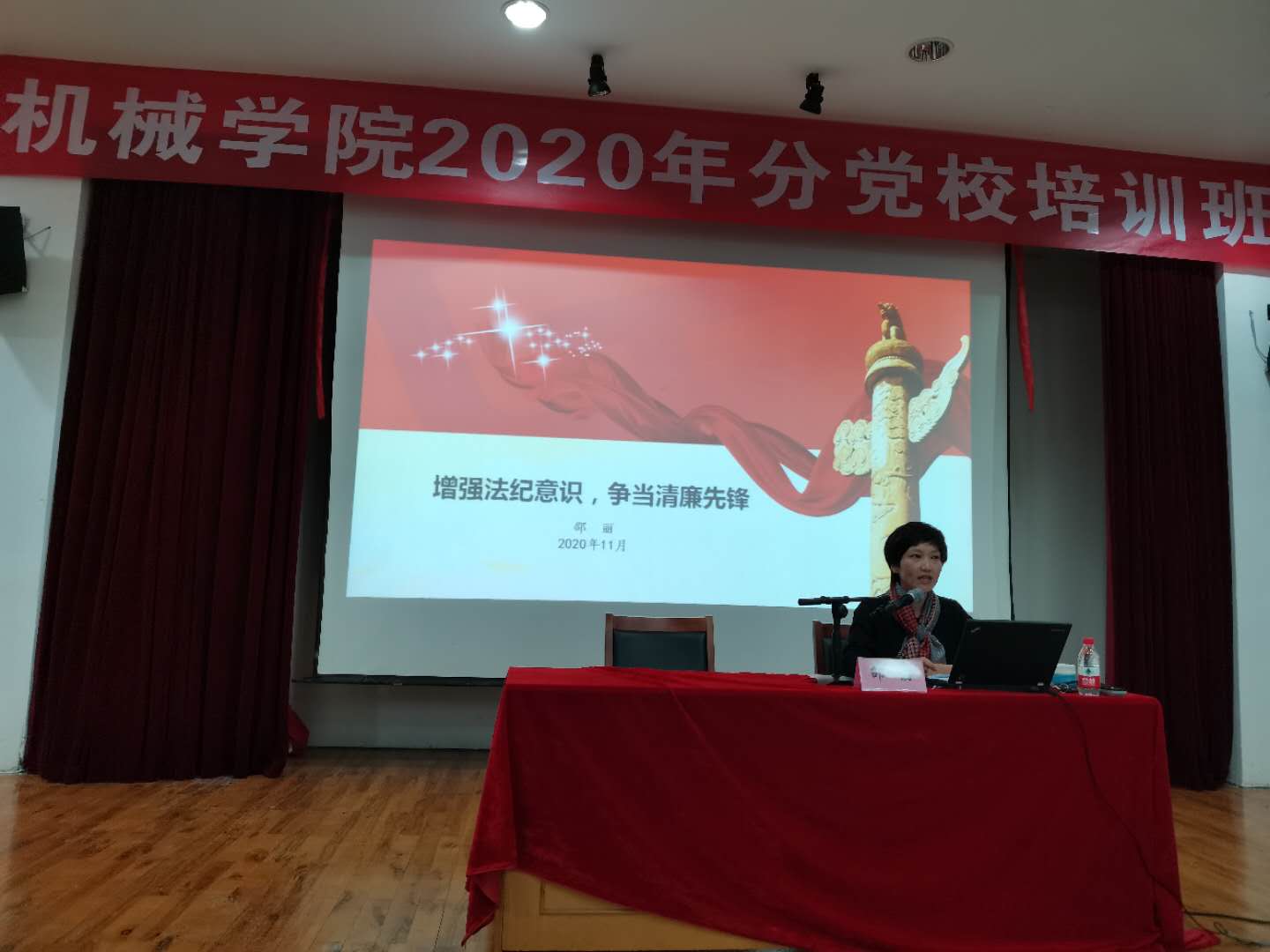 分党校副校长邵丽老师担任主讲人,2020年下半年分党校预备党员培训班全体学员共同现场学习。