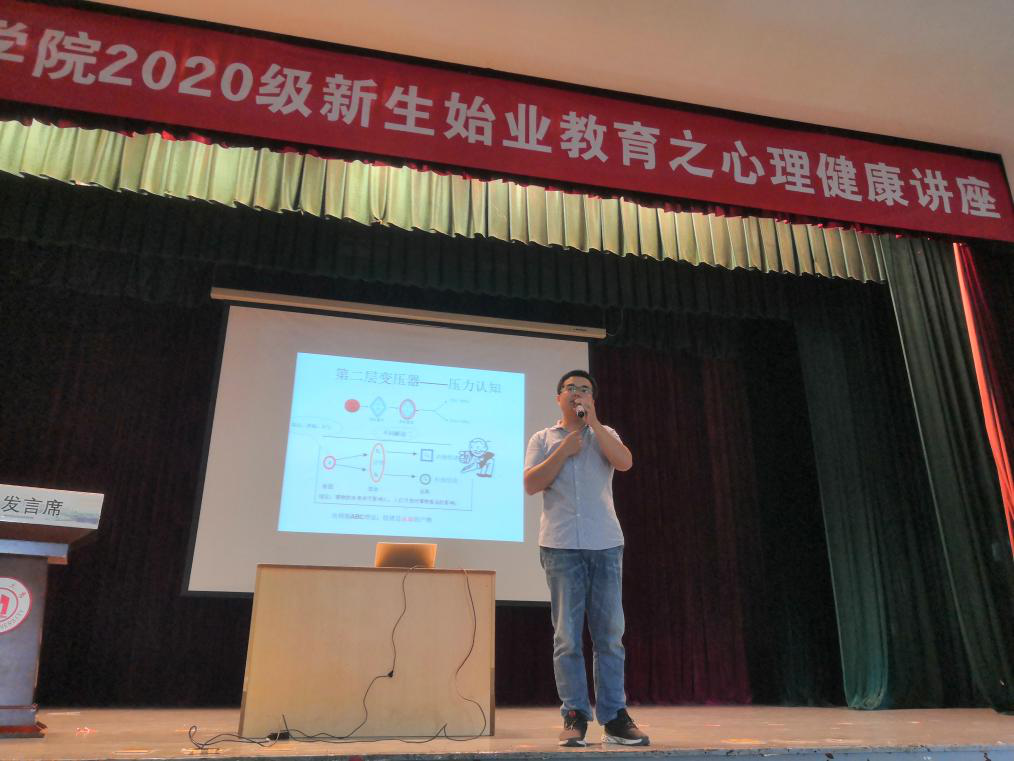 2020级新生始业教育之心理健康讲座在锦绣小剧场举行。讲座邀请了国家二级心理咨询师、学校心理健康指导中心老师范泽平担任主讲,学院全体2020级新生参加了讲座。