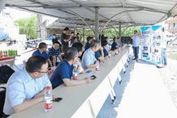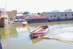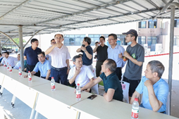 研讨会分现场考察和技术研讨两个阶段。现场考察阶段,与会领导和专家观摩了港珠澳大桥智能潜浮式防船撞拦阻装备物模试验。王永刚教授简单介绍了拦阻装备基本构成和工作原理。现场共进行了6组船舶拦阻物模试验,均成功实现了柔性无损拦阻船舶。专家们对新技术表现出浓厚的兴趣,在试验现场进行了充分讨论和交流。