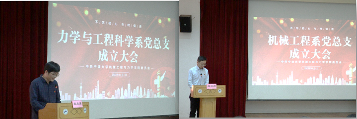 在绣山工程大楼三楼报告厅分别召开力学与工程科学系党总支、机械工程系党总支成立大会。两个系的全体党员参加会议,学院党委班子成员列席会议。