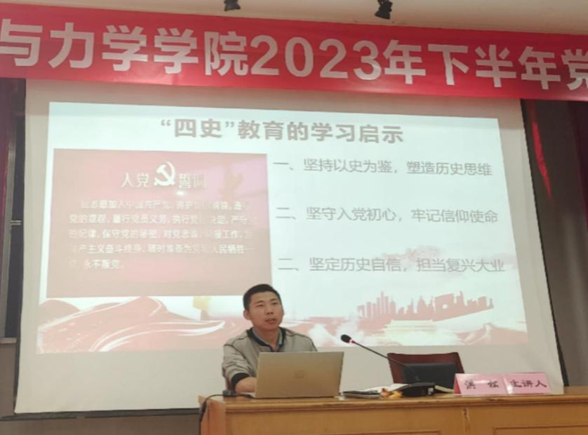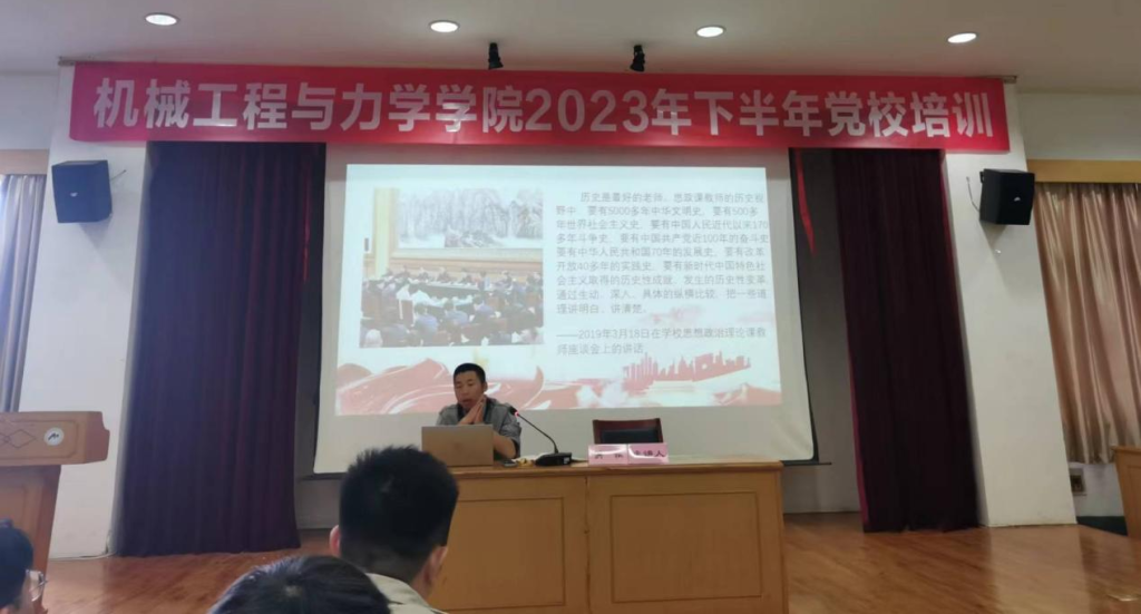 分党校在绣山工程楼三楼报告厅举办“党史、新中国史、改革开发史、社会主义发展史”专题党课,学工办主任洪松老师为全体学员授课。