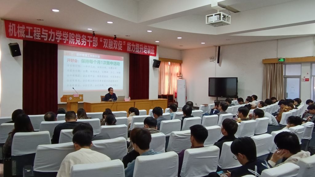 党务干部“双融双促”能力提升培训班在绣山工程大楼三楼报告厅如期开班。学院全体师生党务干部共100余人参加培训。
