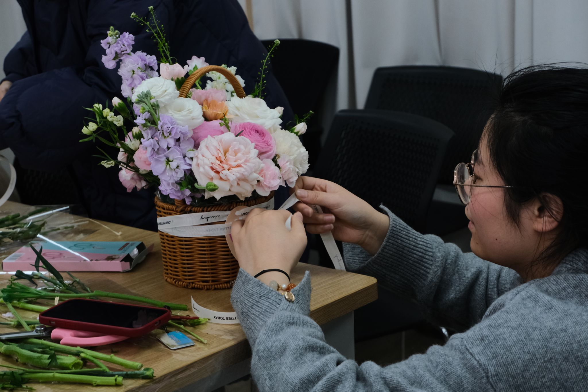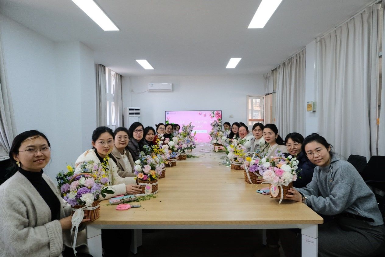 分工会组织学院女教工开展“花开三月,共享芳华”插花活动。此次活动特别邀请了专业花艺师现场指导,吸引了众多女教工的热情参与。