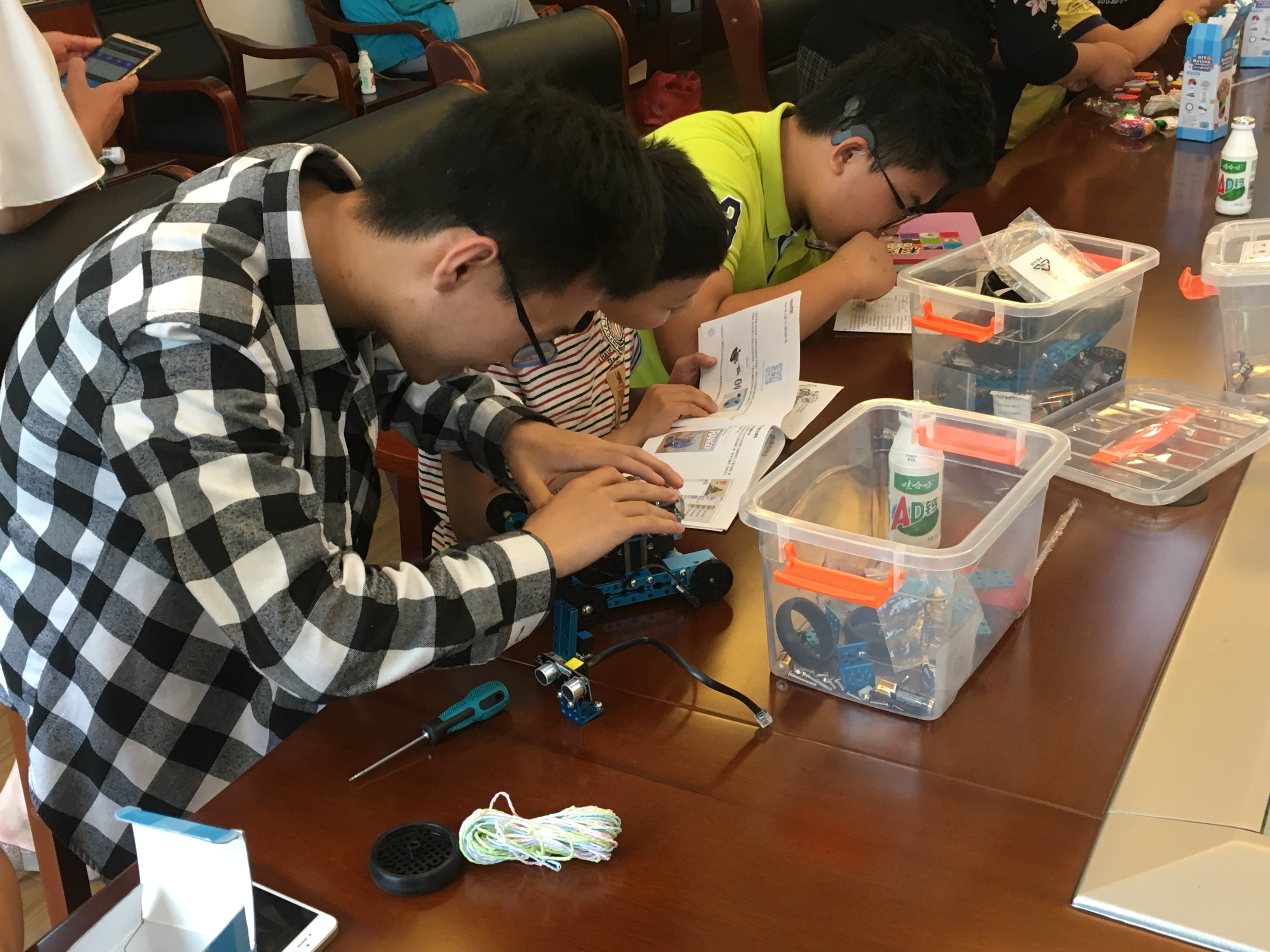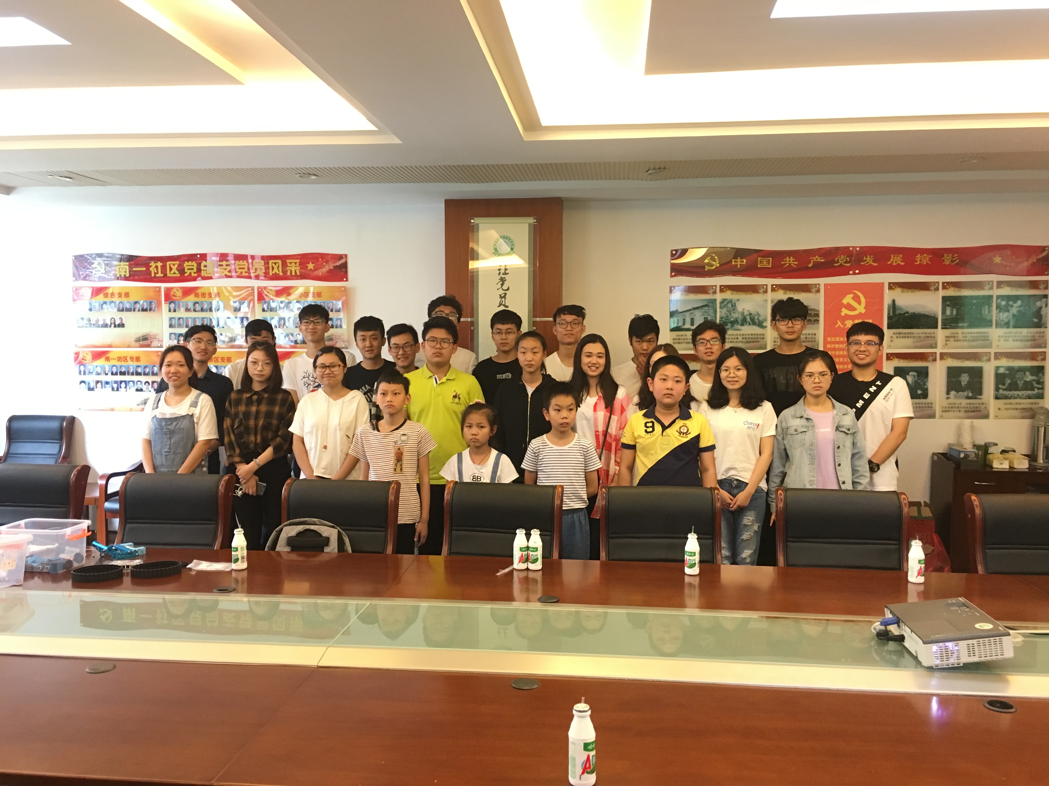 特色的创客机器人和robber master俱乐部的参赛步兵车,孩子们都被深深吸引,气氛热烈。最后,在袋鼠跳等游戏中结束了本次活动,党支部同学为孩子们分发了铅笔盒、笔记本等文具用品,鼓励大家好好学习,成长成才。
