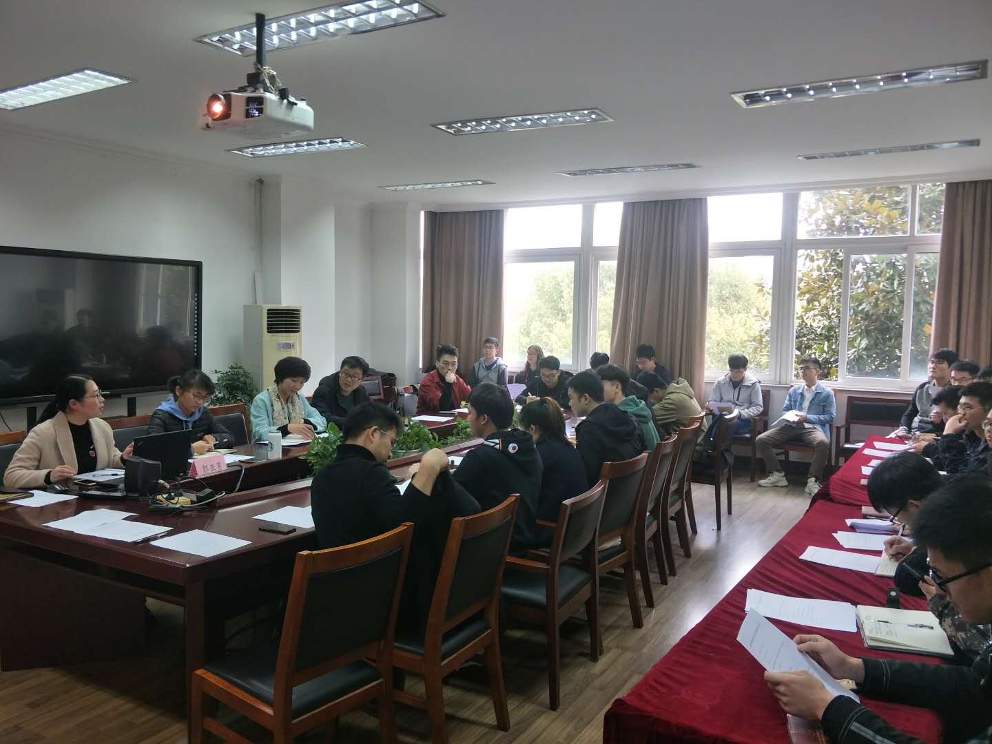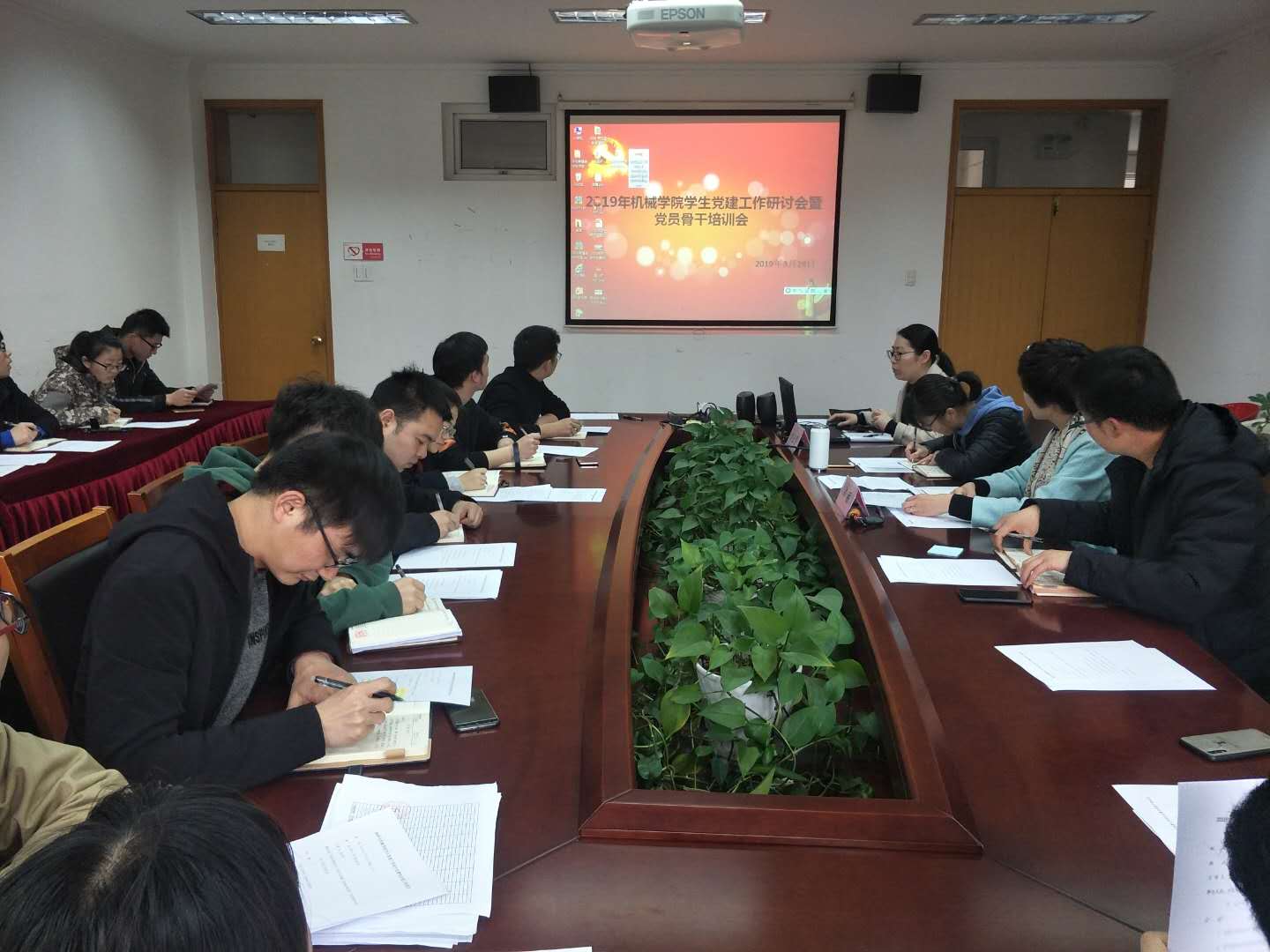 2019年学生党建工作研讨会暨党员骨干培训会在绣山工程大楼208会议室顺利召开。学院党委副书记邵丽,党务秘书郭亚男,学生党支部支委、学生党建中心委员共计40余人参加了会议。