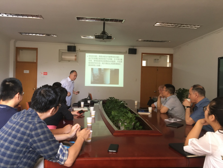 交流期间,乌方对金属材料在海洋环境中服役性能及评价,阴极保护、海洋重防腐涂料的设计与防腐机理、海洋环境应力腐蚀行为分析以及海洋腐蚀现场检测技术进行了全面系统的介绍。我院陈建康教授,杨子旋、崔明君、鲁思渊和曹均博士分别作了关于混凝土在海洋环境中腐蚀及力学损伤机理的研究,管线钢在海洋环境中应力腐蚀行为研究,海洋环境中长效防腐涂层的制备及腐蚀机理研究,海洋环境中模具用不锈钢腐蚀机理研究以及重载滑动轴承表面液体喷涂MoS2/PI多聚物涂层的摩擦性能研究的报告。
