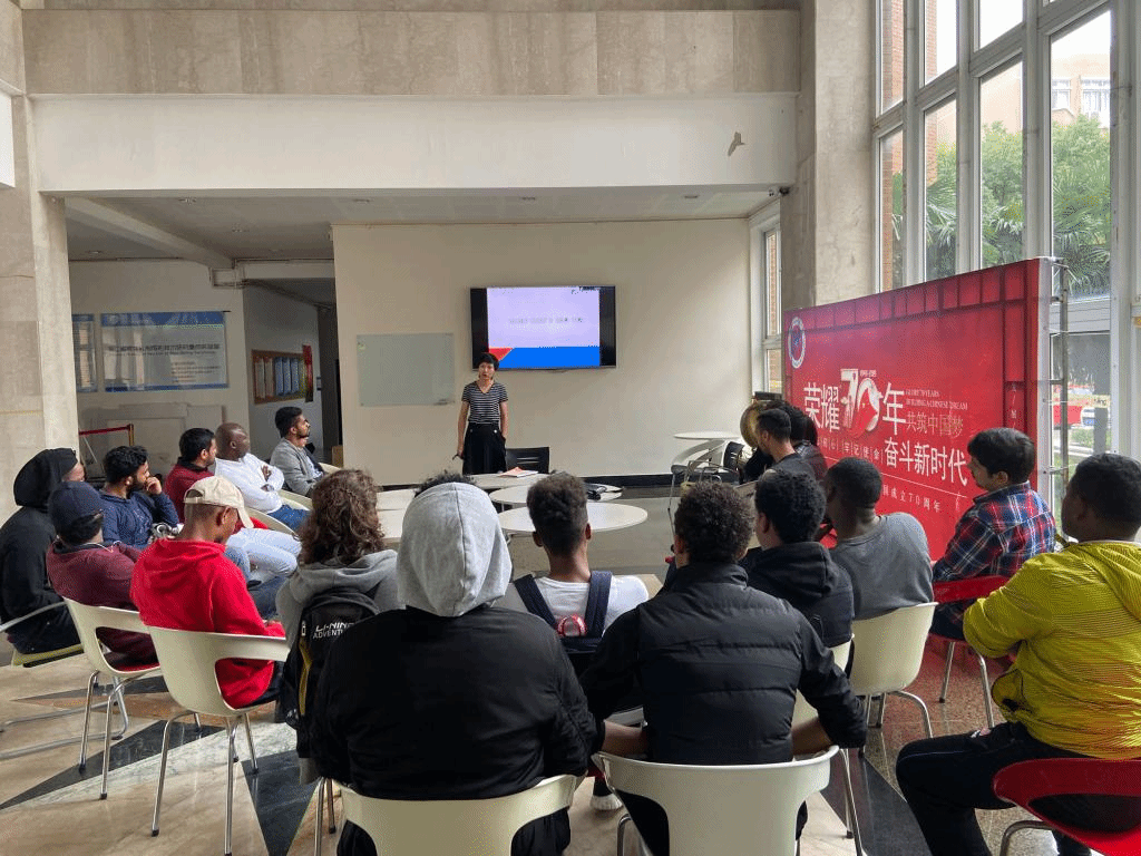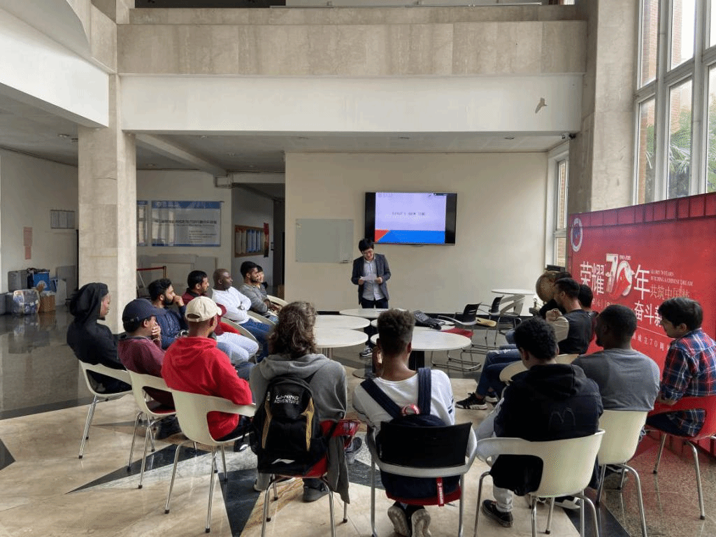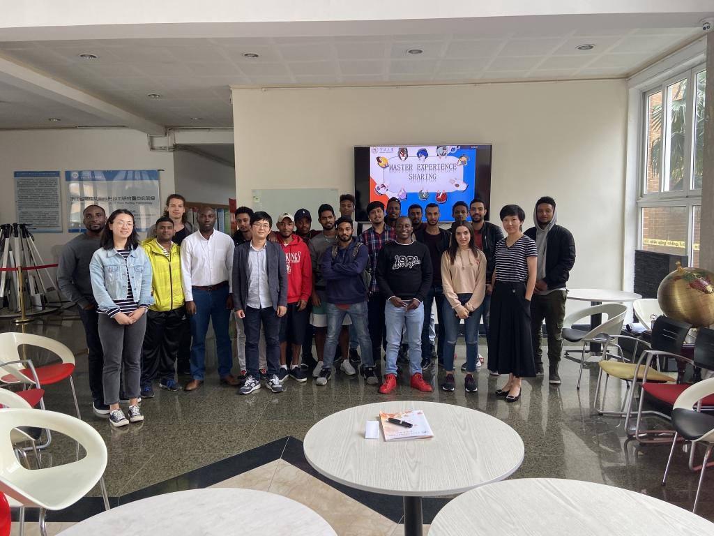 国际部在学院一楼大厅开展留学生研究生经验分享大会。会议由晏程程主持,学院党委副书记邵丽老师,国际部部长黄斌老师,2016级本科留学生和全体留学生研究生参加了会议。会上,晏程程老师对本科毕业生如何申请硕士,签证及奖学金给予详细说明;黄斌老师结合个人求学经历,督促学生制定未来计划,明确目标;2017级研究生代表HAMZAH仔细分析了本科生与研究生学习模式与论文书写之间的不同,并就师生关系分享自己的一些心得;邵丽老师鼓励同学们走出舒适区,积极参加各类实践活动,同时,建议同学们多结交中国朋友,深入了解中国文化,积累人生阅历,提升自身的竞争力。活动结束时,所有参会人员一起合影留念。很多同学表示,本次经验分享收获颇多,希望以后学院多多组织类似活动。