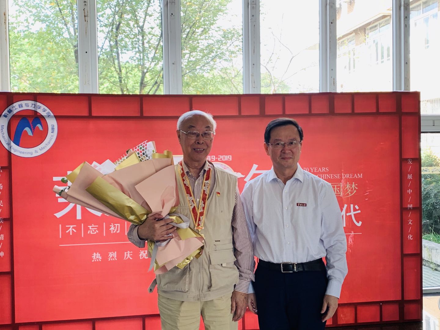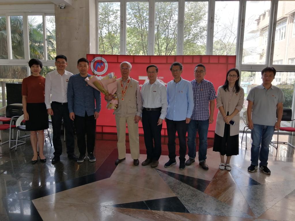 王礼立教授颁发“庆祝中华人民共和国成立70周年”纪念章。学校党校办主任、学院党政班子领导等参加了颁授仪式。