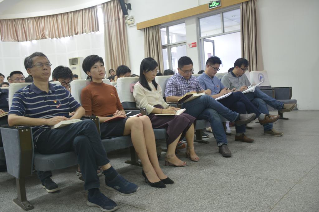 胡泓书记强调,“不忘初心、牢记使命”主题教育就是要以自我革命精神解决党员违背初心和使命的各种问题,要解决思想根子问题,坚守理想信念、初心使命不动摇,要更好地为广大师生员工谋“幸福”,更好地推动学校学院学科的发展,为党育人、为国育才。就是要以抓地有痕的精神分层分类推进主题教育,突出抓好学院领导干部这一重点,在学习教育上要做到贯穿始终,在调查研究上要做到察实情、出实招、求实效,在检视问题上要做到有深度、有广度、有力度,在整改落实上要做到深入抓、联动抓、持续抓;充分发挥基层党支部主体作用。通过召开支部党员大会、支委会、党小组会交流学习体会等形式,强化学习效果。
