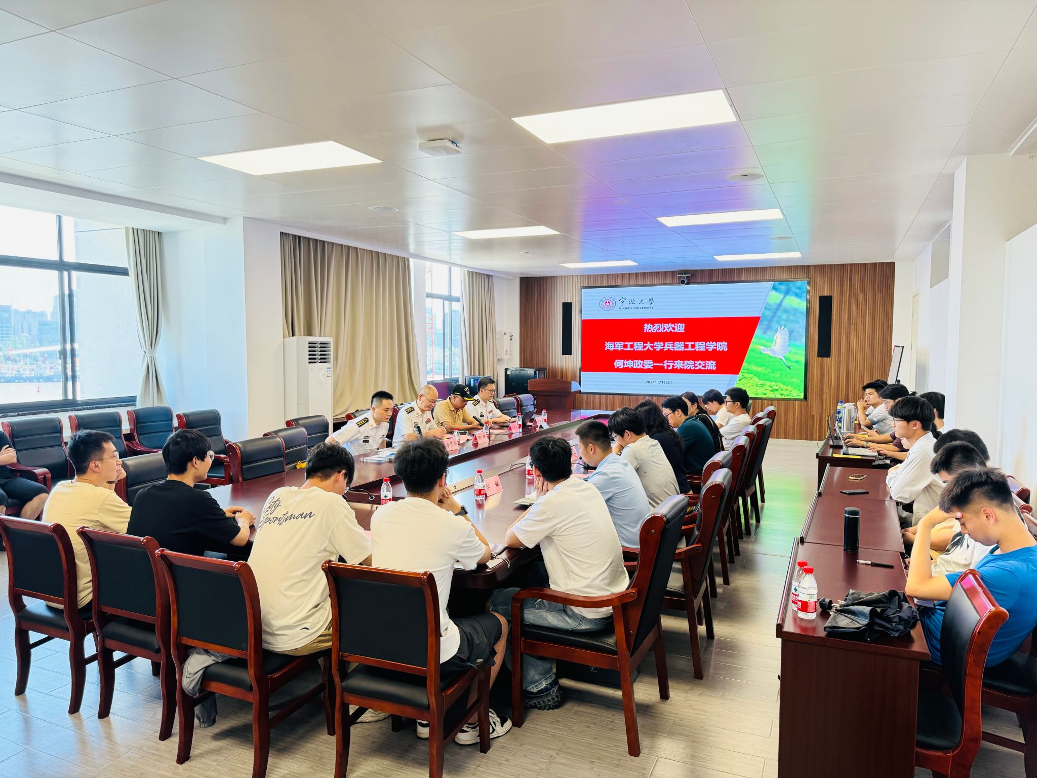 7月5日下午,海军工程大学兵器工程学院政委何坤一行来访我院,就博士生招录及“双一流”高校应届本科毕业生推免入伍等工作进行调研交流。学院党委书记王智腾、副院长张明华、力学系和教务学工等系(部)负责人、力学博士生和工程力学本科生代表参加交流,党委副书记、纪委书记沈妍伶主持会议。