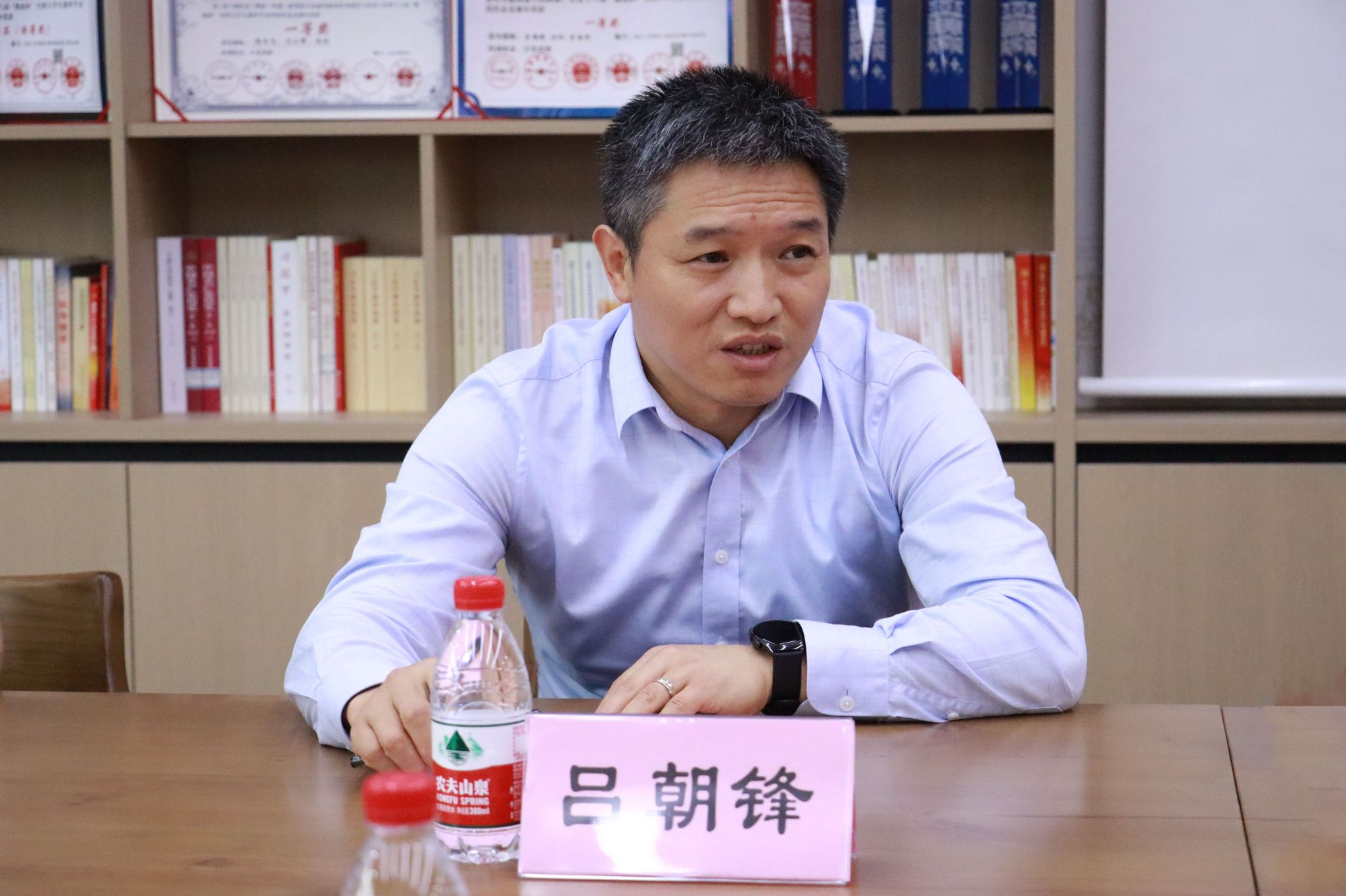 吕朝锋详细了解教师们的工作、生活情况,充分肯定了学院全体教职工一直以来对学校发展做出的贡献,赞扬了教职工们艰苦奋斗、开拓创新的精神。他强调,高层次人才在学校的发展历程中起着至关重要的作用,是推动学校迈向更高水平的核心力量。吕校长提出“共生共才,互相成就”的理念,指出学校与人才应紧密携手,共同成长。同时,要立足“双一流”建设,鼓励大家充分发挥学科优势,取长补短,积极在机制、平台、生态等方面创造交叉形态,促进融合,为学院建设贡献更大的力量。