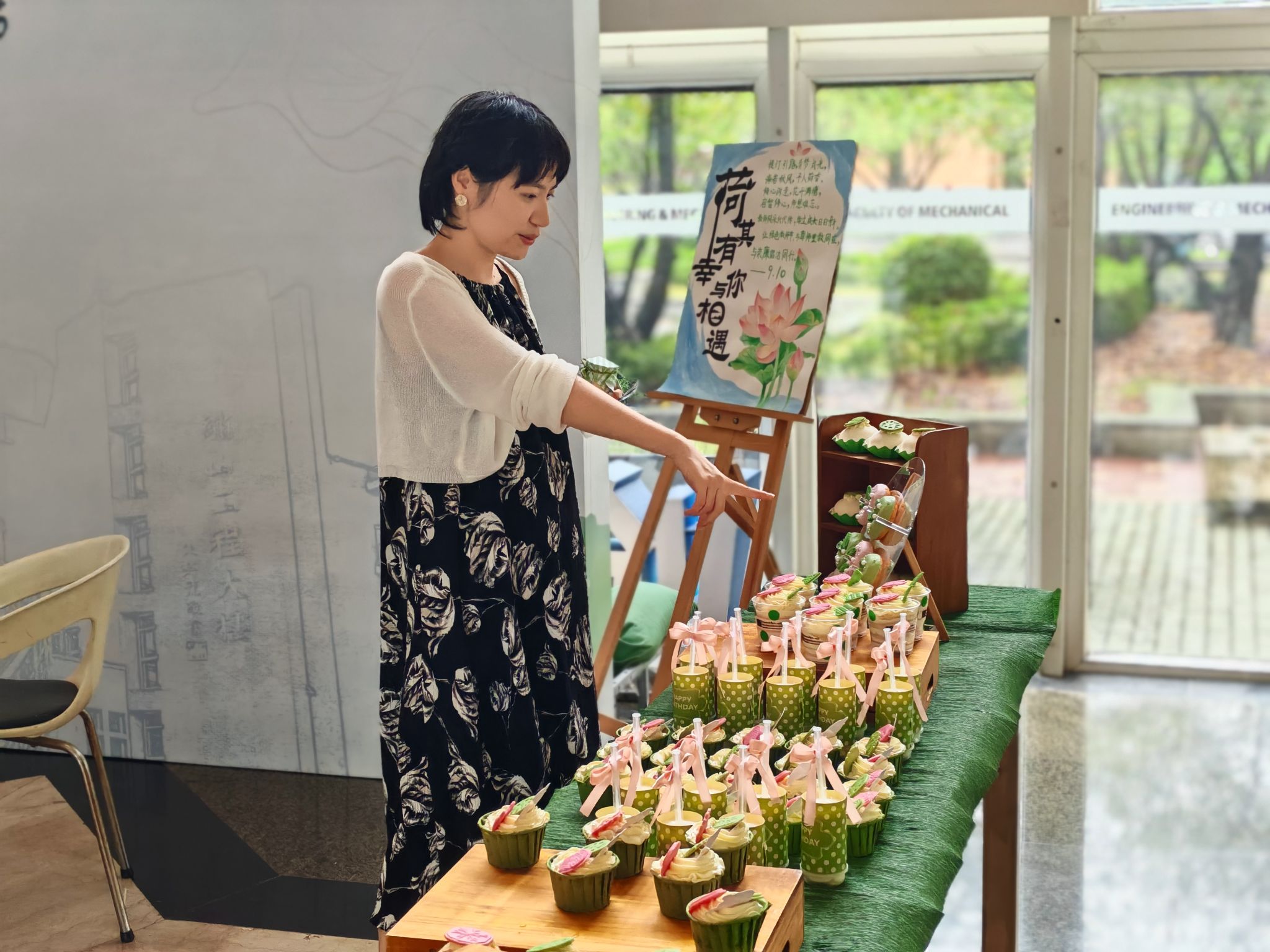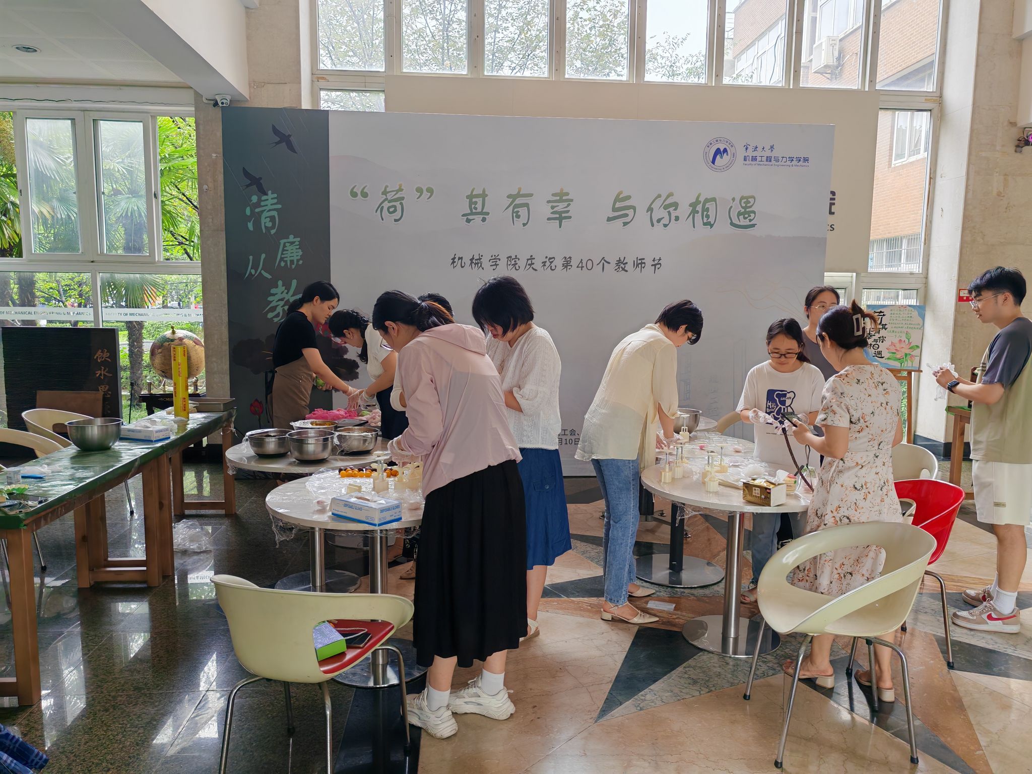 在绣山工程楼一楼大厅举办了“‘荷’其有幸,与你相遇”教师节活动,活动由成人韩漫